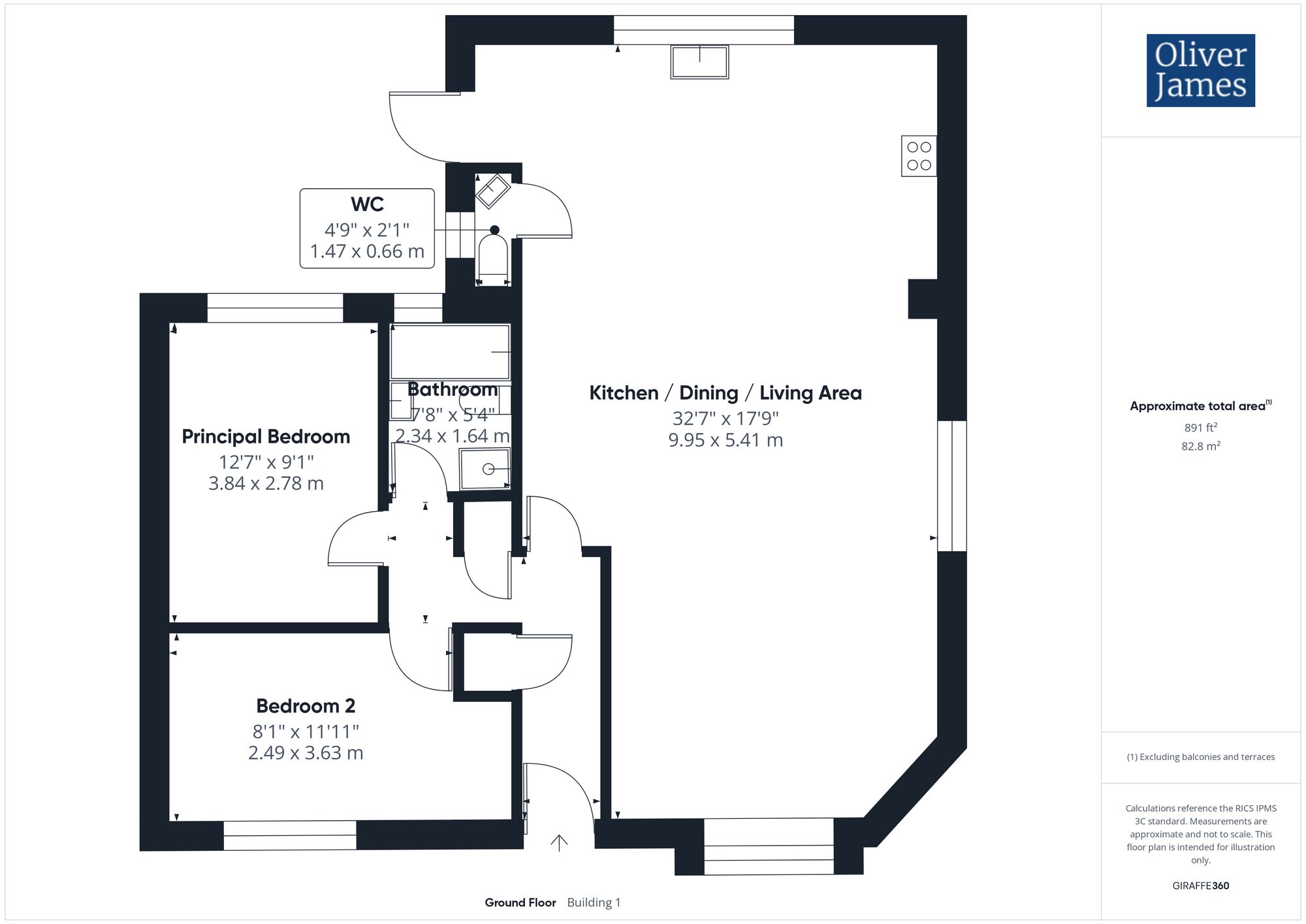 - The Gross Internal Floor Area is approximately 960 sq/ft / 89.1 sq/metres.