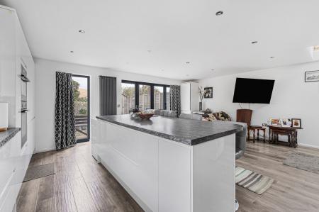 - Contemporary kitchen with integral appliances and sociable central breakfast island.