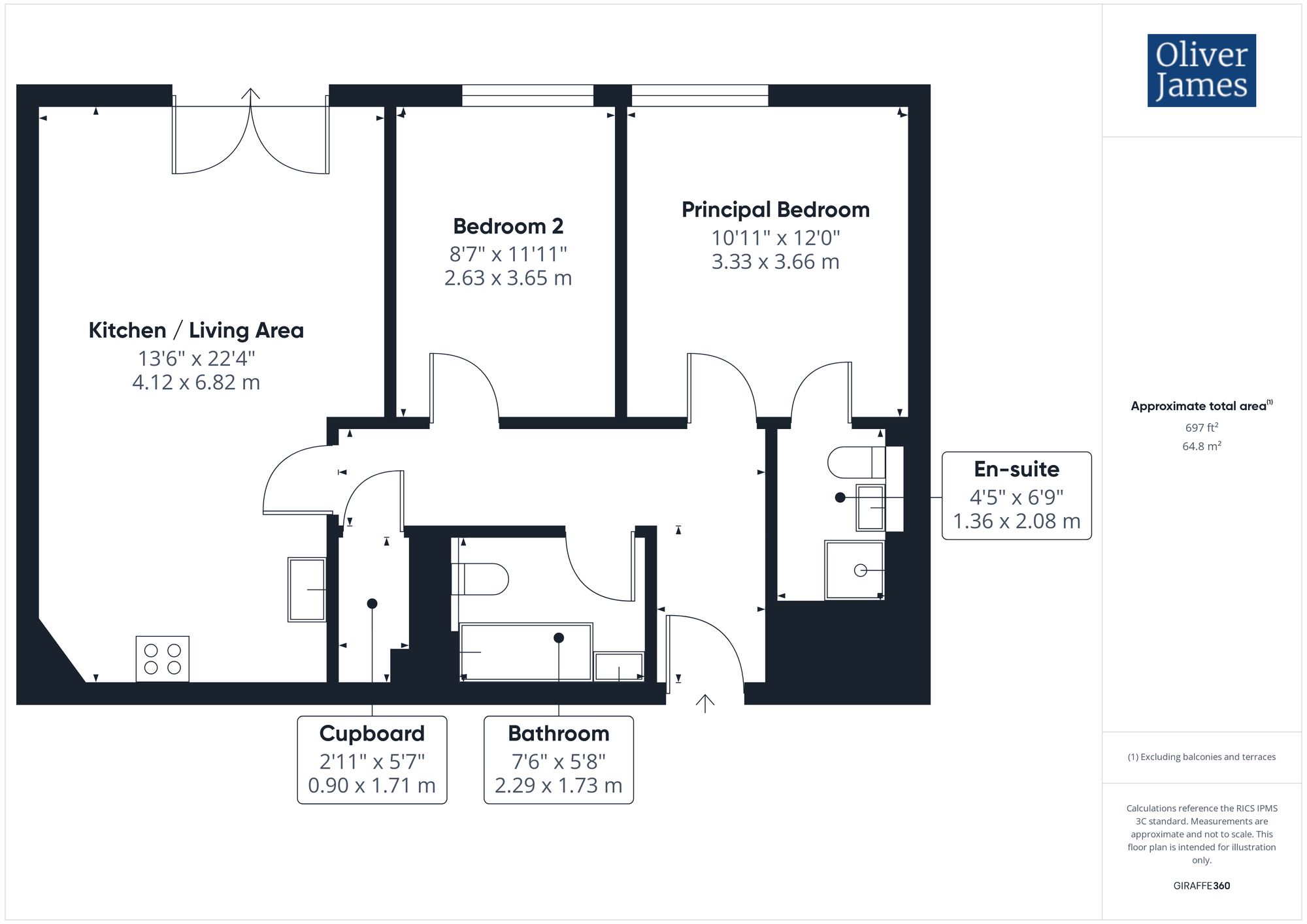 - 2 bedrooms / 2 bathrooms / 1 reception room.