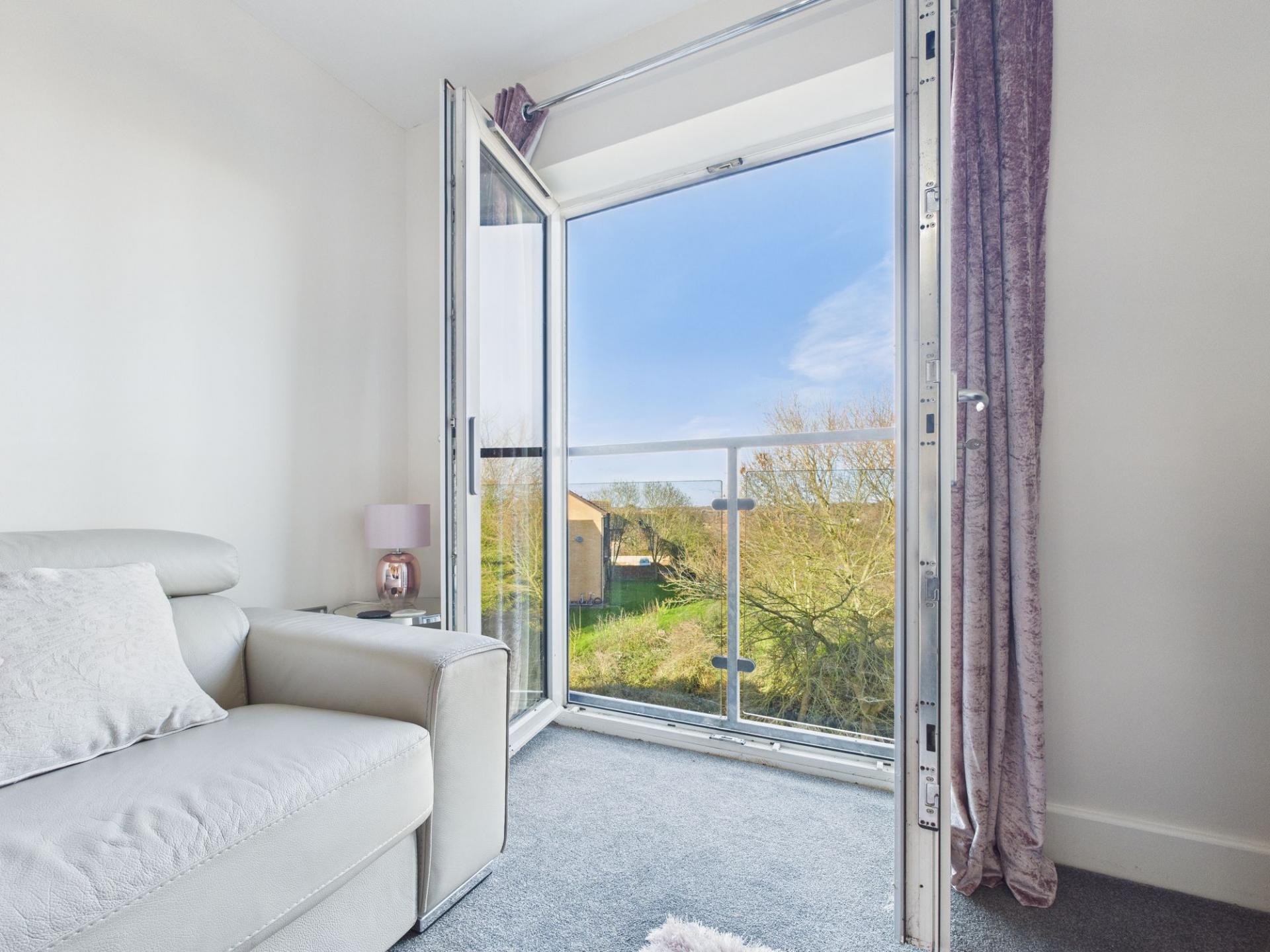 - A lovely Juliet balcony overlooking the communally maintained gardens.