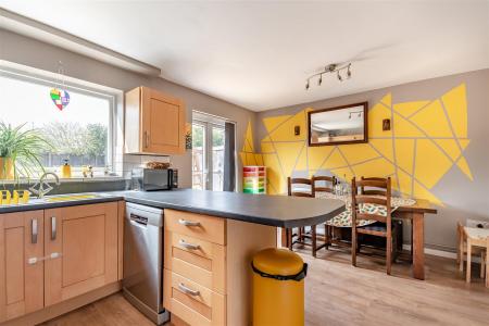 Kitchen / Dining Room - 4.60m x 3.61m (15'1 x 11'10) - Stainless steel single drainer sink unit with mixer tap, cupboards under, range of base and wall mounted units, integrated electric oven, four ring hob over, cooker hood above, plumbing for washing machine and dishwasher, large under stairs storage cupboard, rear aspect window with a private outlook over the gardens, UPVC French doors to the rear patio, fully glazed door to the side.