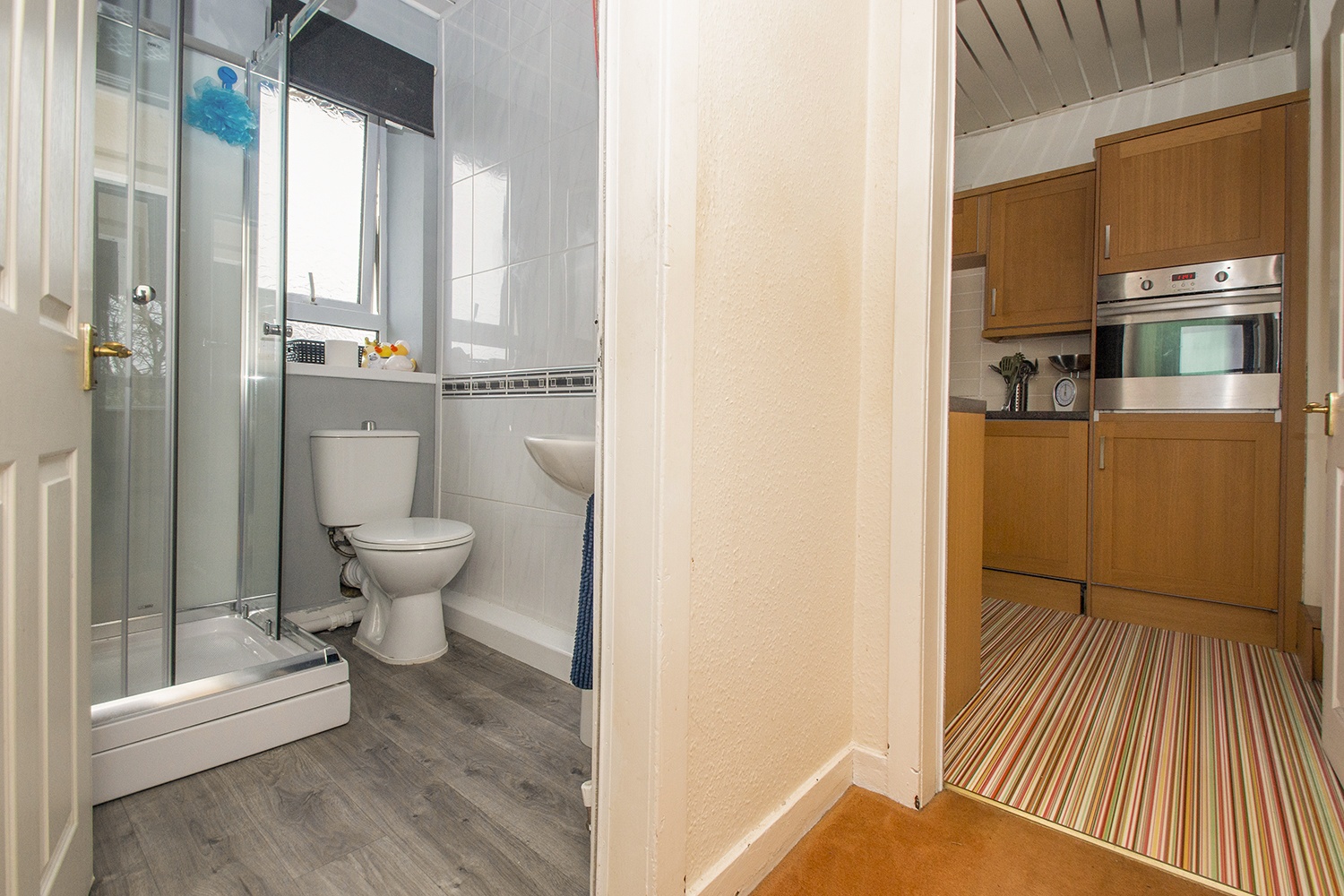 The accommodation is laid out over the one level and comprises of entrance hallway; well-proportioned front facing lounge; fitted kitchen housing an ample range of base and wall units with complementary worktops and tiled splash-back areas, integrated gas hob and electric oven; one double bedroom and three-piece shower room comprising of wc, wash hand basin and shower cubical.