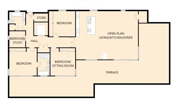 - Three bedrooms & study