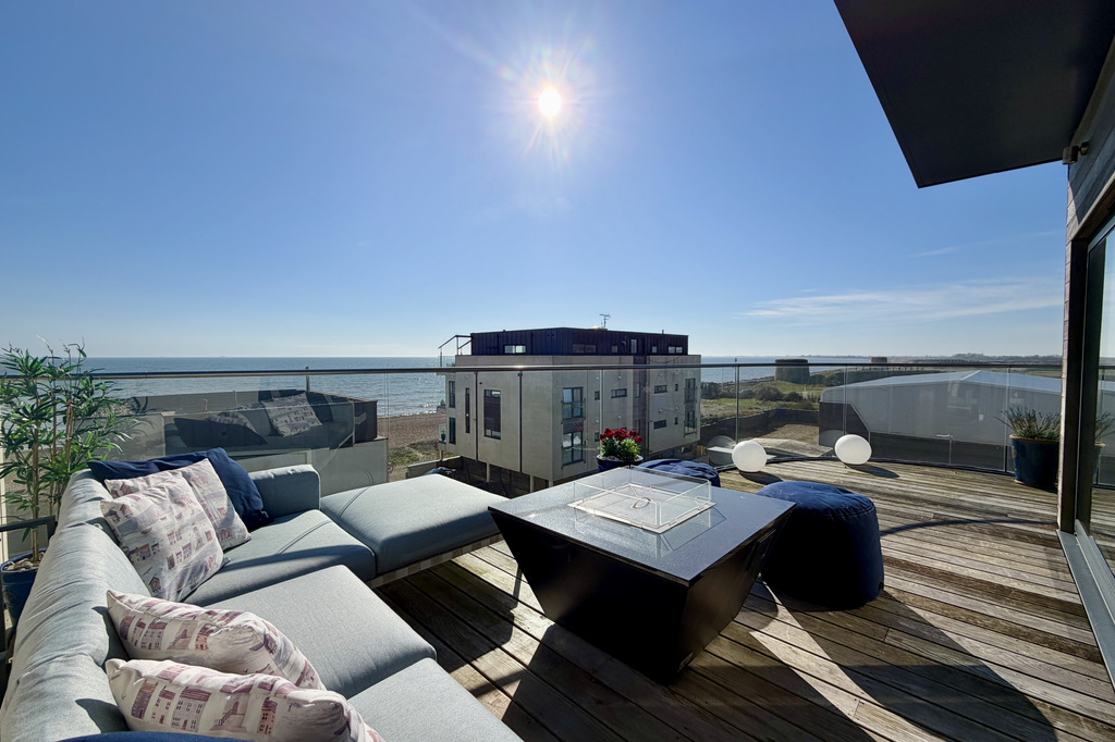 Occupying an enviable position within the prestigious Fishermans Beach, this exceptional three-bedroom penthouse apartment offers luxurious coastal living with breathtaking panoramic views across the English Channel to the front and attractive outlooks over the roughs to the rear. Accessed via direct lift entry or communal stairs, you are greeted with a welcoming entrance hall, the property boasts a spacious open plan living room opening onto a substantial private terrace perfectly positioned to enjoy breathtaking sea views, an open plan kitchen/dining room with breakfast balcony further enjoying the sea views and separate utility room. An inner hallway leads to three generous double bedrooms, two of which benefit from access to further private terraces enjoying the rear views, including a main bedroom with en-suite facilities, in addition to a well-appointed family bathroom. The property benefits from gas fired underfloor heating throughout as well as a water softener. This superbly proportioned and located home is within one of Hythe’s most sought-after seafront developments & an early viewing is highly recommend to avoid disappointment.