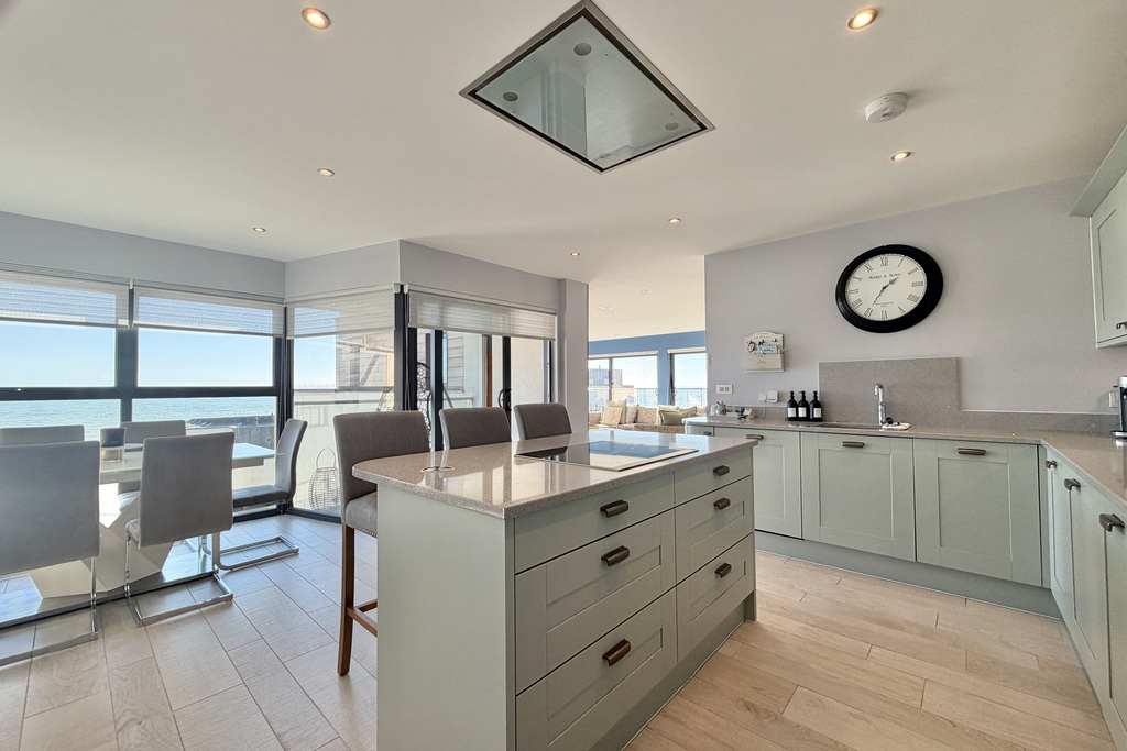 Situated in an enviable location directly adjoining the beach and having panoramic views of the sea and bay. The renowned fishmongers and eatery Griggs of Hythe is within a few minutes walking distance with Hythe town centre being approximately fifteen minutes' walk and offering a good selection of independent shops together with a Waitrose store, Aldi and Sainsbury's. The historic Royal Military Canal runs through the centre of the town and offers superb recreational facilities as does Hythe's unspoilt promenade. The M20 Motorway, Channel Tunnel terminal and Port of Dover are also easily accessed by car. High Speed rail services are available from both Folkestone stations, giving access to St Pancras London in just over fifty minutes.