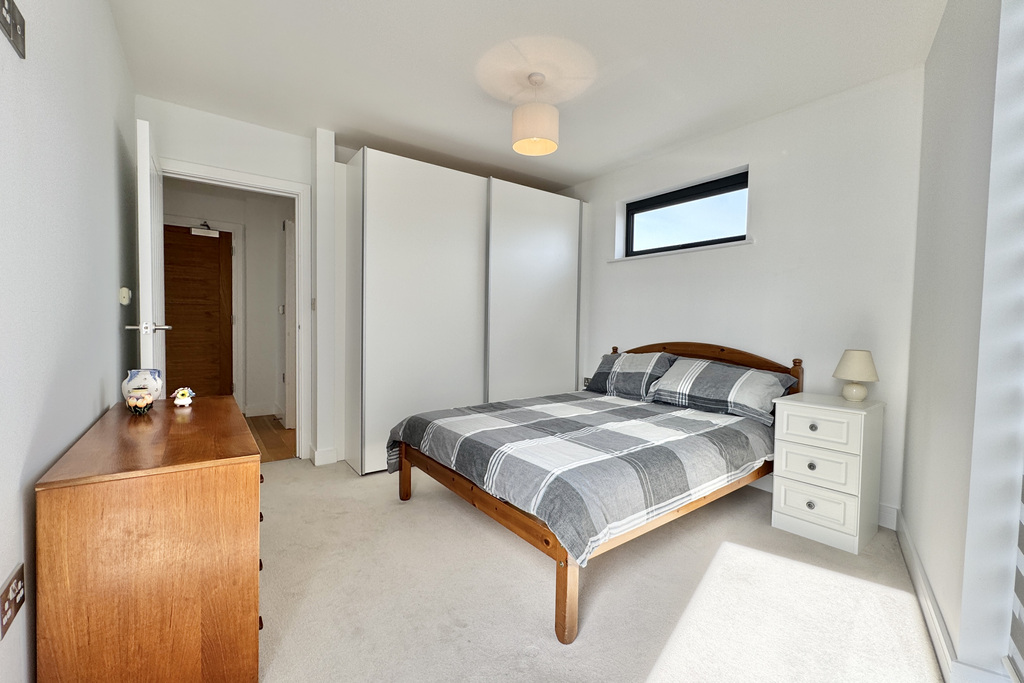 with double glazed window to side and front taking advantage for stunning sea views, double glazed window to rear overlooking Hythe town, built in wardrobes with hanging rail and shelving