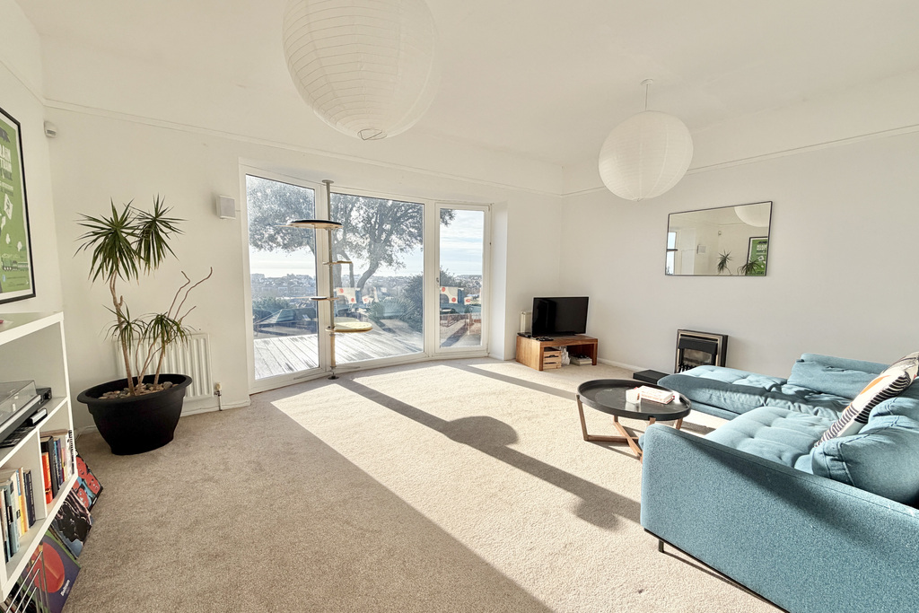with uPVC double glazed windows overlooking front with door to side enjoying stunning panoramic sea views, two radiators, gas fireplace