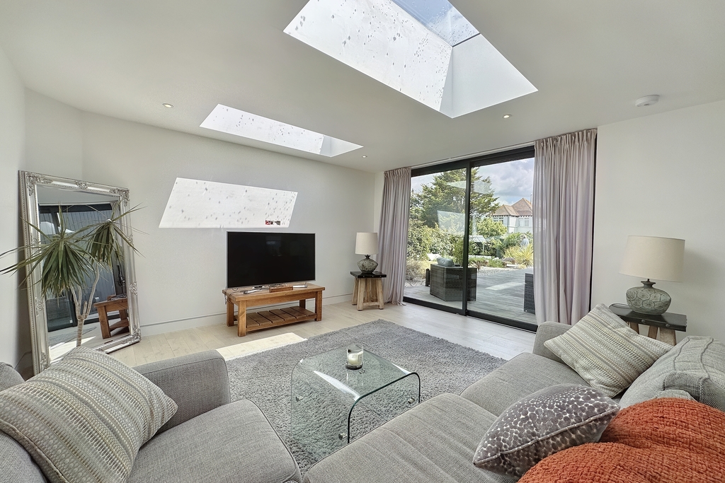 with engineered wood flooring, two skylights, powder coated double glazed sliding doors leading to rear garden