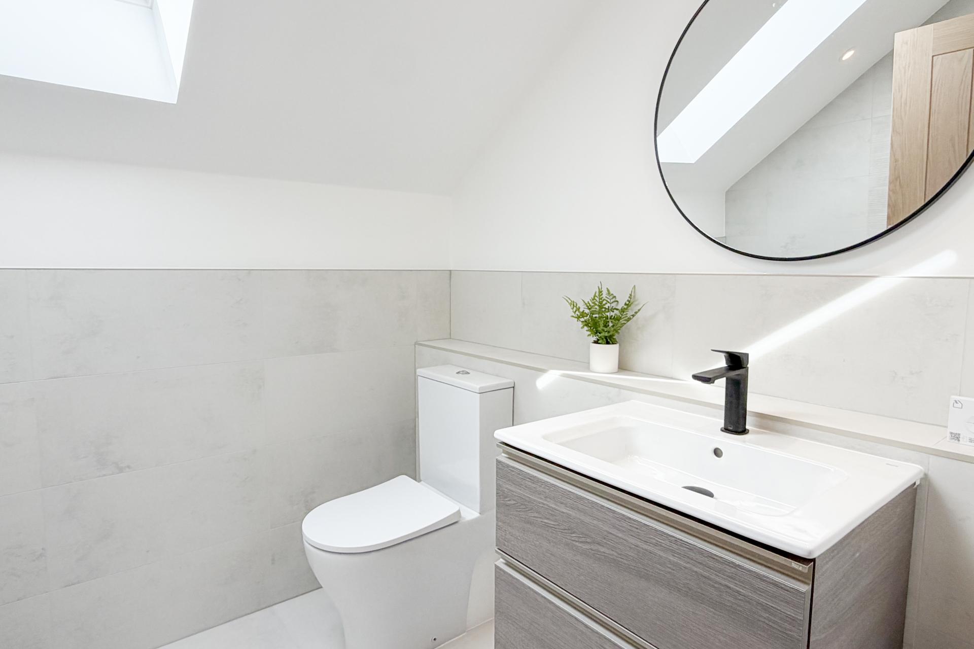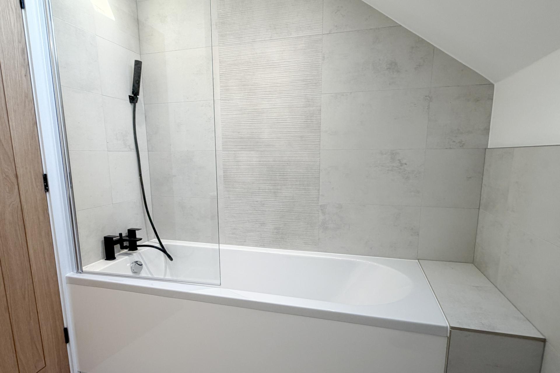 Upstairs, you’ll find two well-proportioned double bedrooms, each offering ample space and natural light. The bathroom is finished to an excellent standard, with a white suite complemented by ceramic-tiled walls and flooring, creating a clean, modern look.