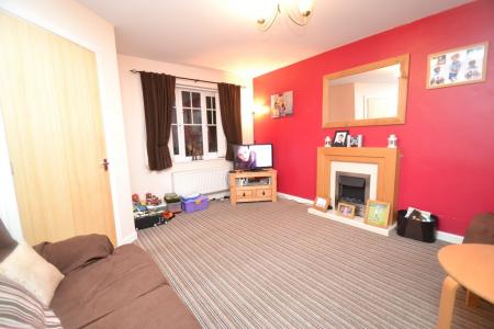Living Room: - 12'01" x 15'08" (3.68m x 4.78m) - Double glazed window to the front elevation, modern fire surround, marble base and hearth, inset electric fire, television point, under stairs storage, double sliding doors through to the fitted dining kitchen, central heating radiator