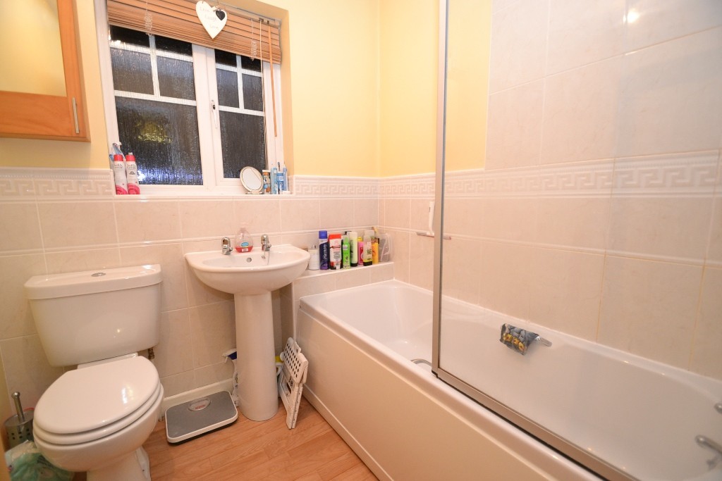 Bathroom / Wc: - 7'8" x 6'05" (2.34m x 1.96m) - Double glazed opaque window to the rear elevation, three piece white suite comprising of a panelled bath with shower above, pedestal wash basin, double flush WC, extractor fan, central heating radiator