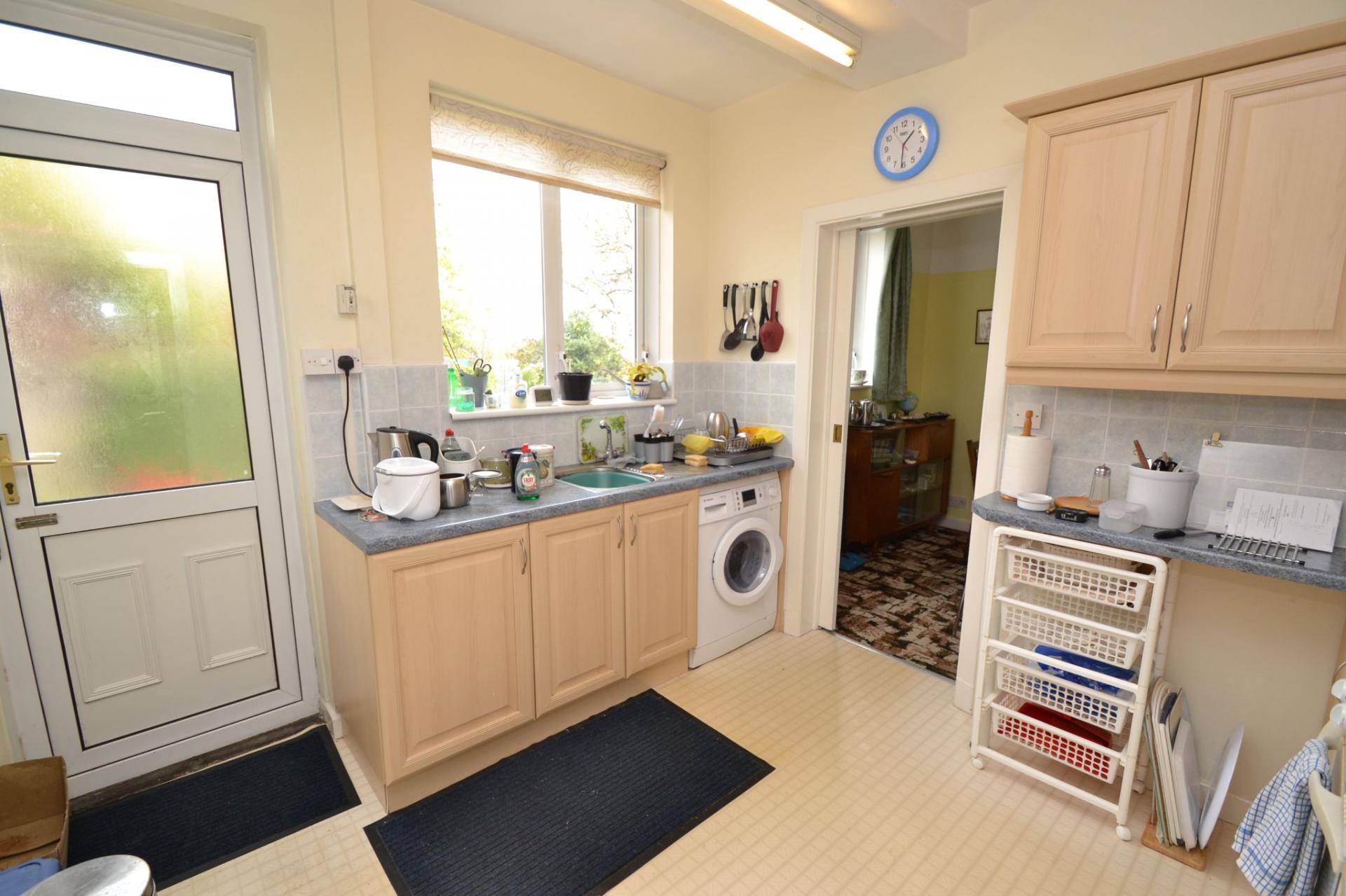 Kitchen: 3.07m x 2.99m (10'0 x 9'8). Range of wall & base units in maple, work tops with tiling above, plumbed for an auto-washer, extractor over a 4 ring ceramic hob, built in electric oven, part glazed rear Upvc dg door along with a Upvc dg window, stainless steel 1.5 sink with a mixer tap, pantry cupboard.