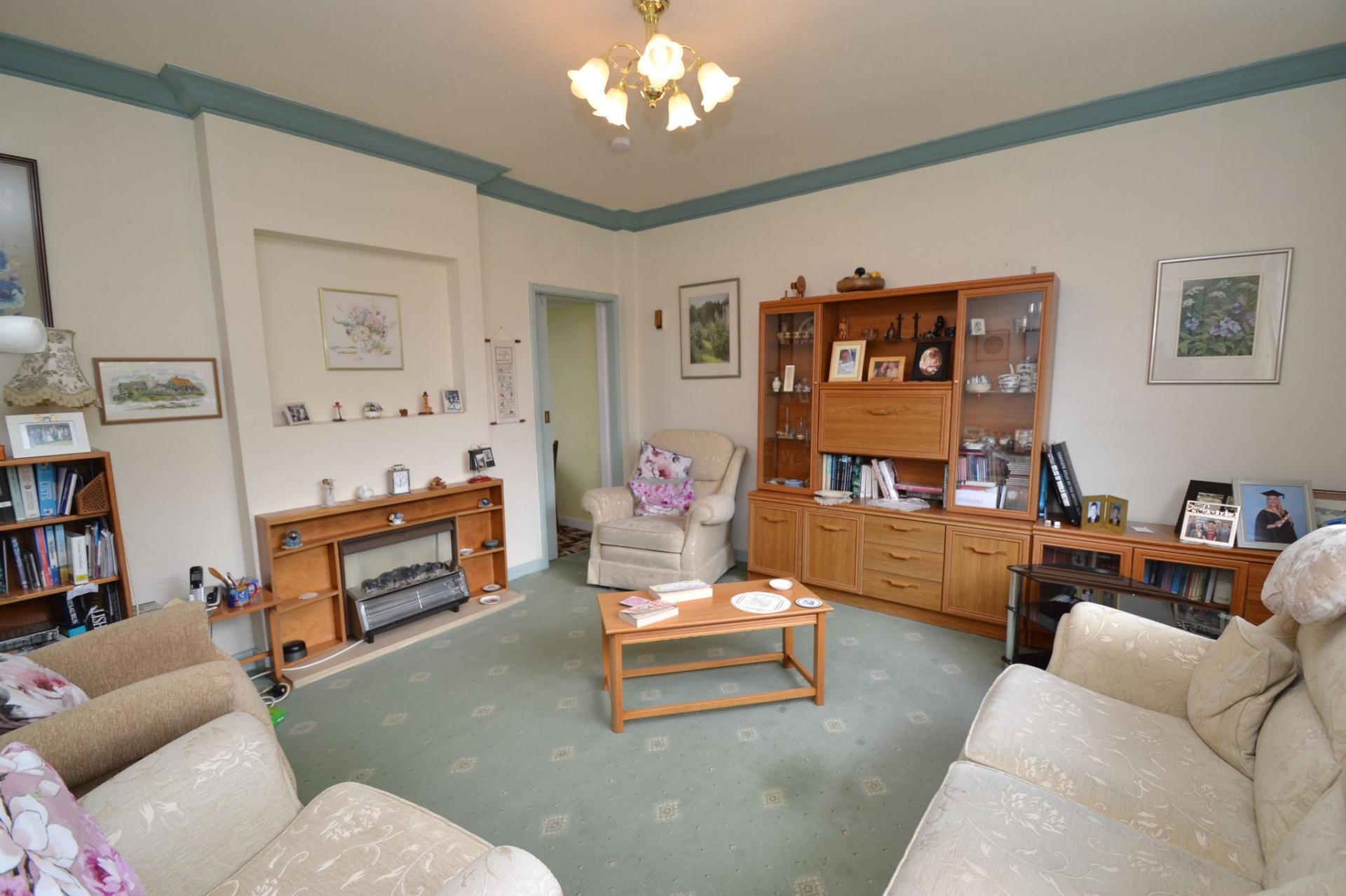Lounge: 4.23m x 4.18m (13'8 x 13'7). Upvc dg window to front, electric storage heater, coving, fireplace with electric fire mounted upon, sliding glazed door leads into the:-