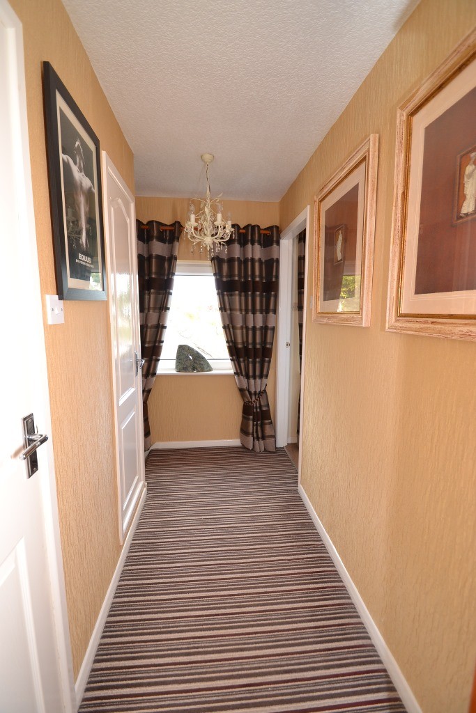 Landing & Stairs: Return landing stairs, side Upvc dg window, linen cupboard.