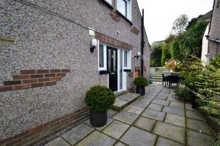 Externally: To the front is gated access and steps to the crazy paved wheelie bin area, flagged path to front garden which is lawned to both sides with well planted borders, patio area to the front, gated access onto a side flagged patio area, night lights, under house storage. Rear SW facing enclosed garden comprising flagged patio, water tap, steps up to a easy to maintain enclosed flagged and gravel garden, path to the detached garage with up and over door from the rear garden, which is also accessed by a private drive.