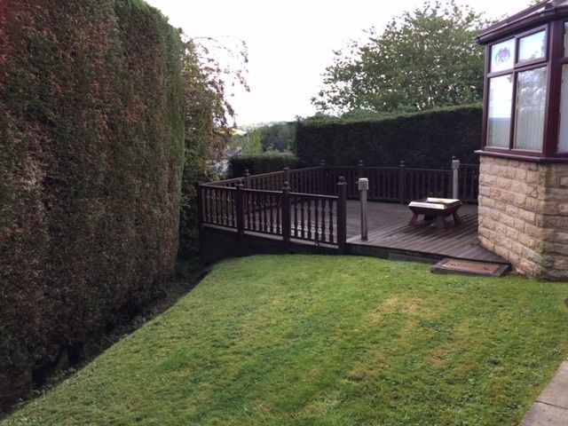 Externally: To the front is a lawned garden, pathway, side drive and detached garage, side path to other elevation. To the rear is an enclosed lawned garden, decked area, sensor lighting.