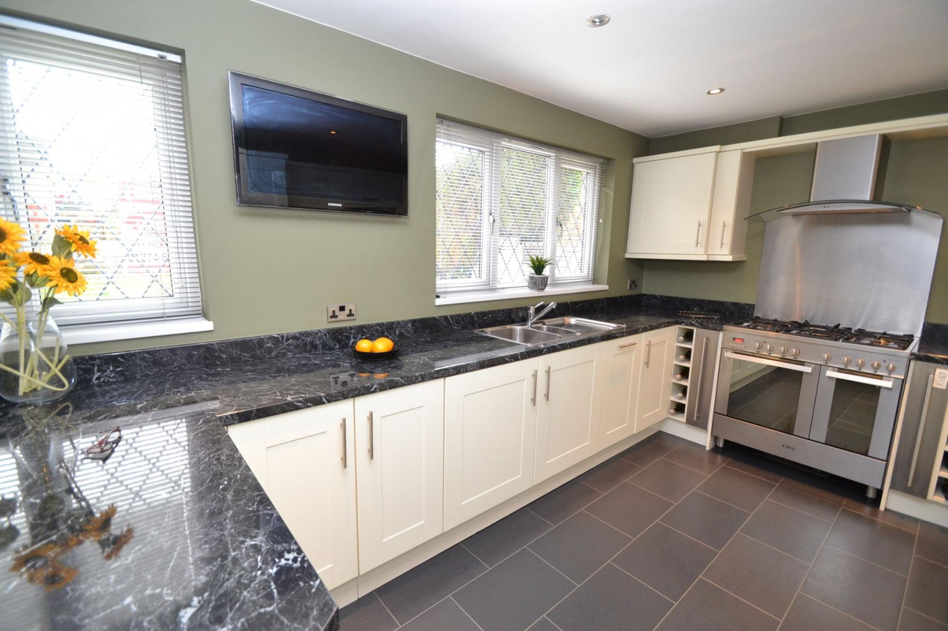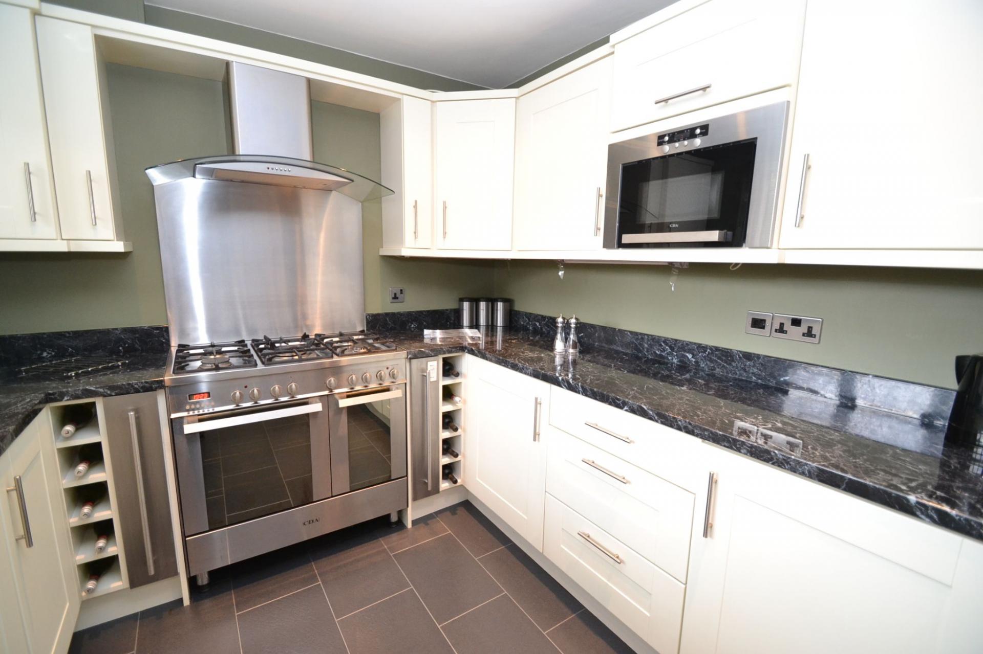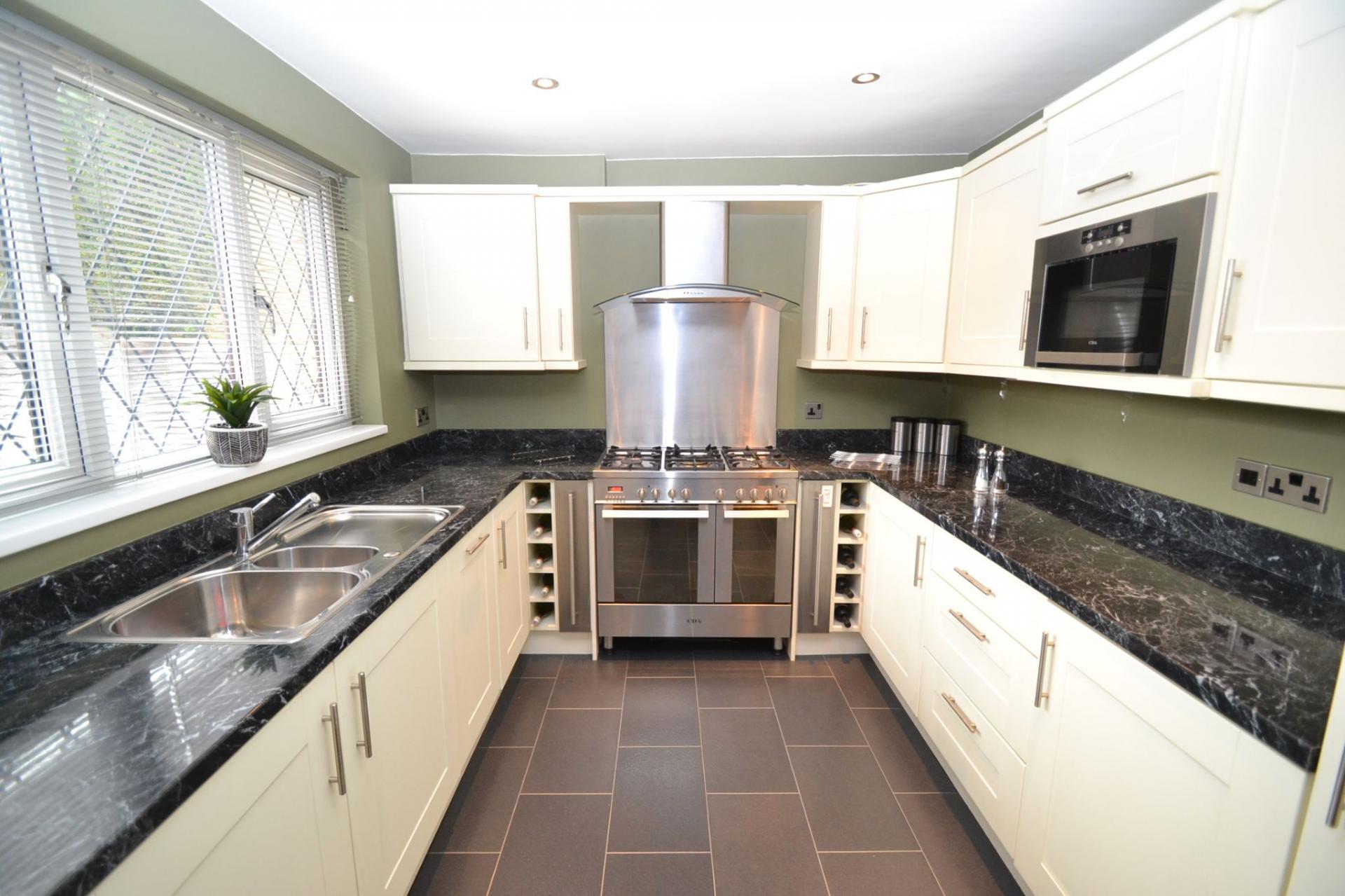 Breakfast Kitchen: 5.3m x 2.7m (17'3 x 8'10). Excellent range of wall & base units with work tops and matching splash backs, under lighting, extractor hood with stainless steel splash back, range in stainless steel with 5 ring gas burners, double oven, integrated slim line CDA dishwasher and an auto-washer, stainless steel 1.5 sink with a mixer tap, breakfast bar, ch boiler in a wall cupboard, airing tank cupboard, radiator, two leaded Upvc dg windows to front, inset ceiling lights, alarm panel.