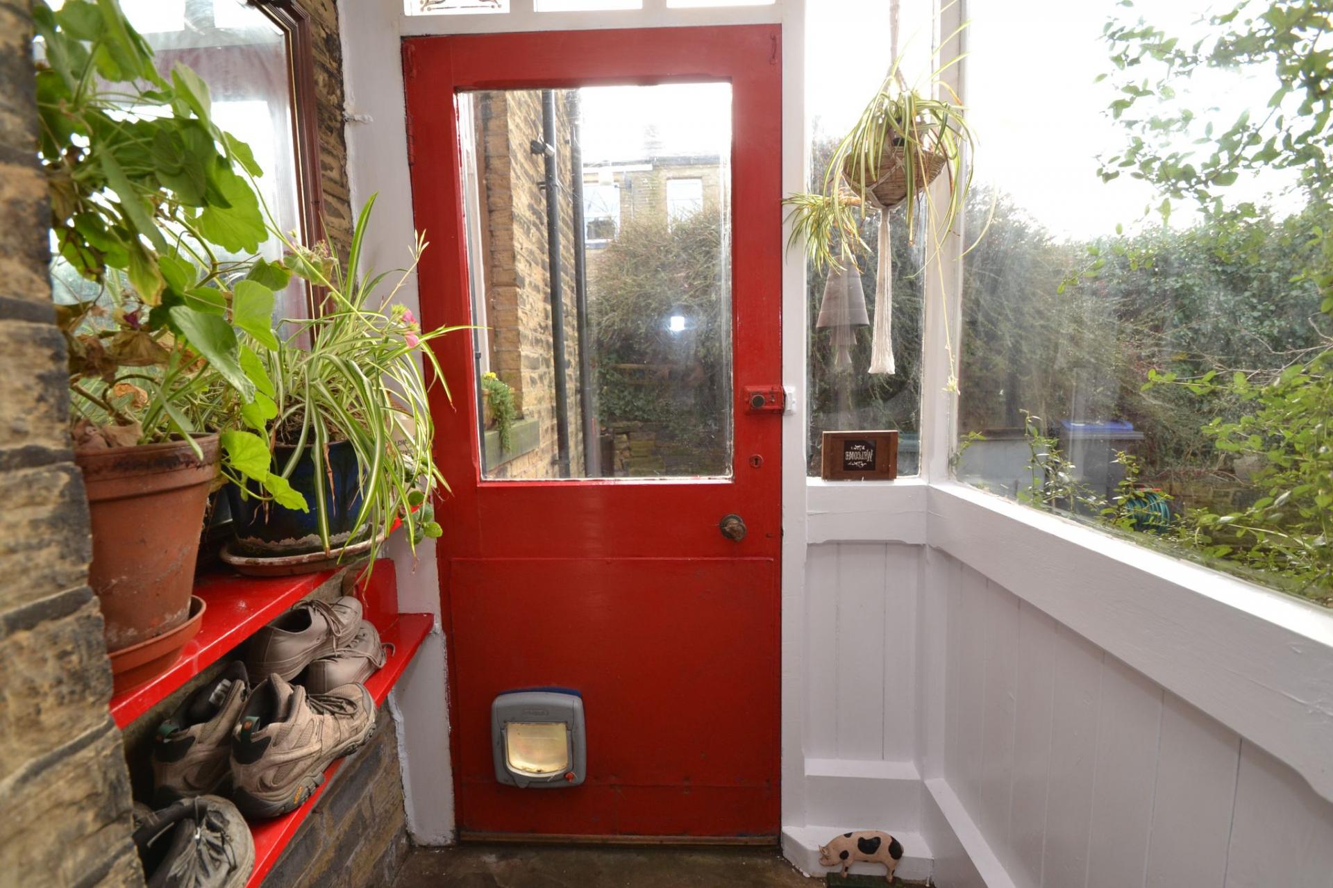 Porch: Useful for shoes, access door.
