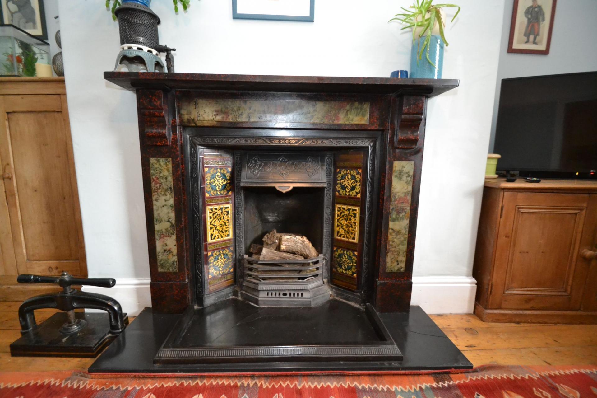 Bedroom 1: 4.65m x 3.33m (15'2 x 10'9). Wood dg sash window with coloured leaded lights, double radiator, cast iron feature fireplace in black, stripped wood floor, beams, picture rail.