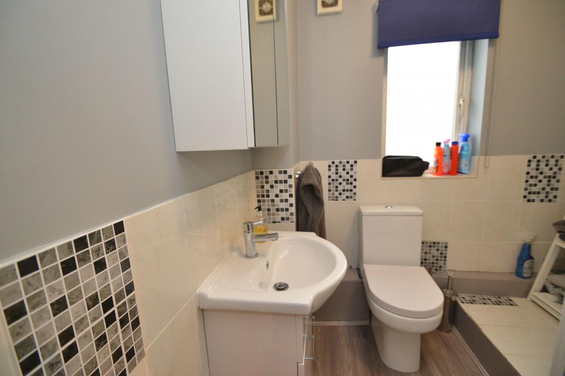 Bathroom: 1.97m x 1.80m (6'5 x 5.10). Fully tiled shower cubicle with an electric Triton shower, wash basin set on a high gloss vanity unit in white and wc, part tiled, laminate flooring, frosted Upvc dg window.