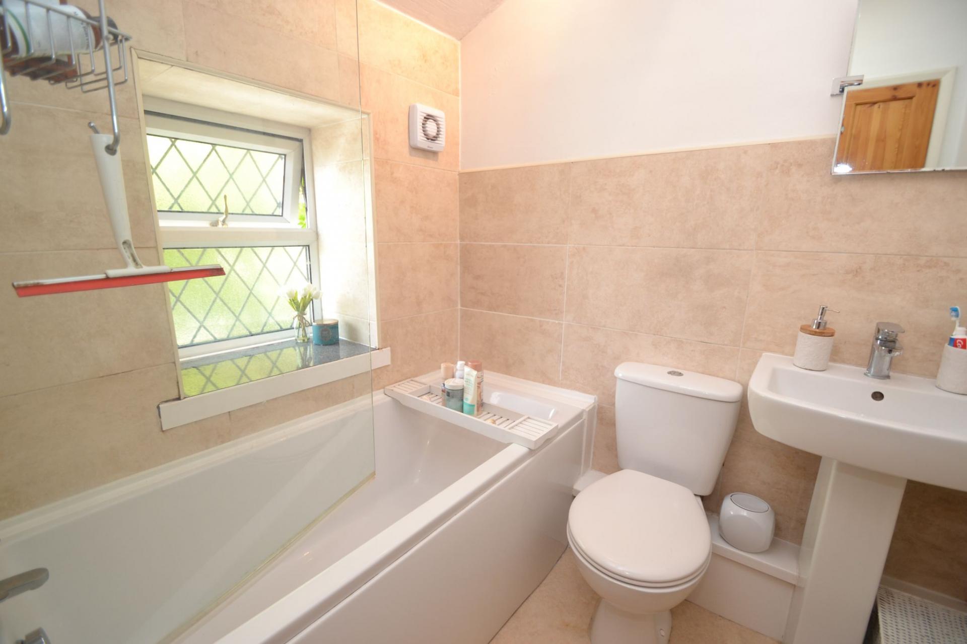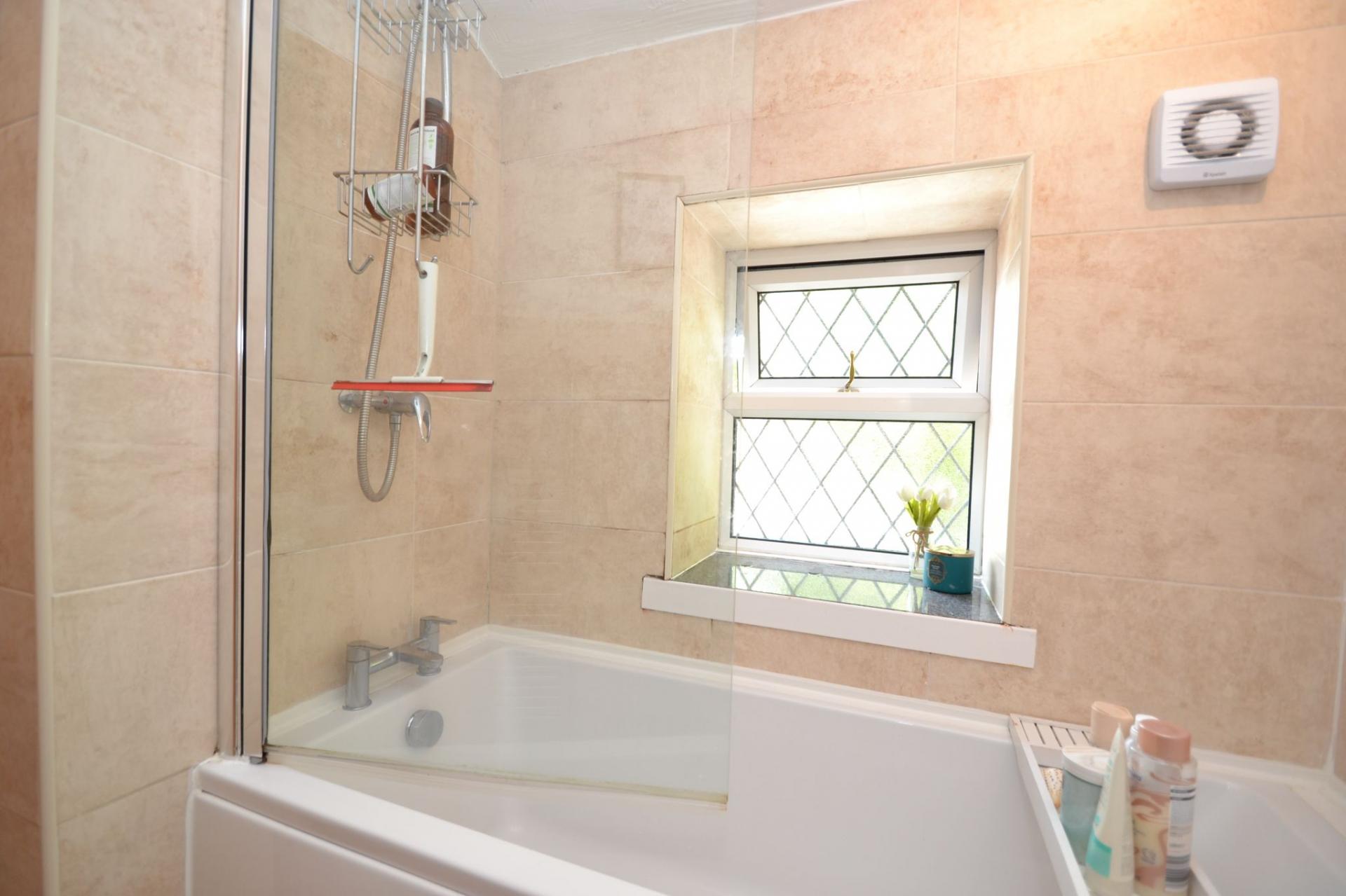 - 2 BEDROOMS & AN ATTRACTIVE BATHROOM IN WHITE WITH A SHOWER OVER THE BATH