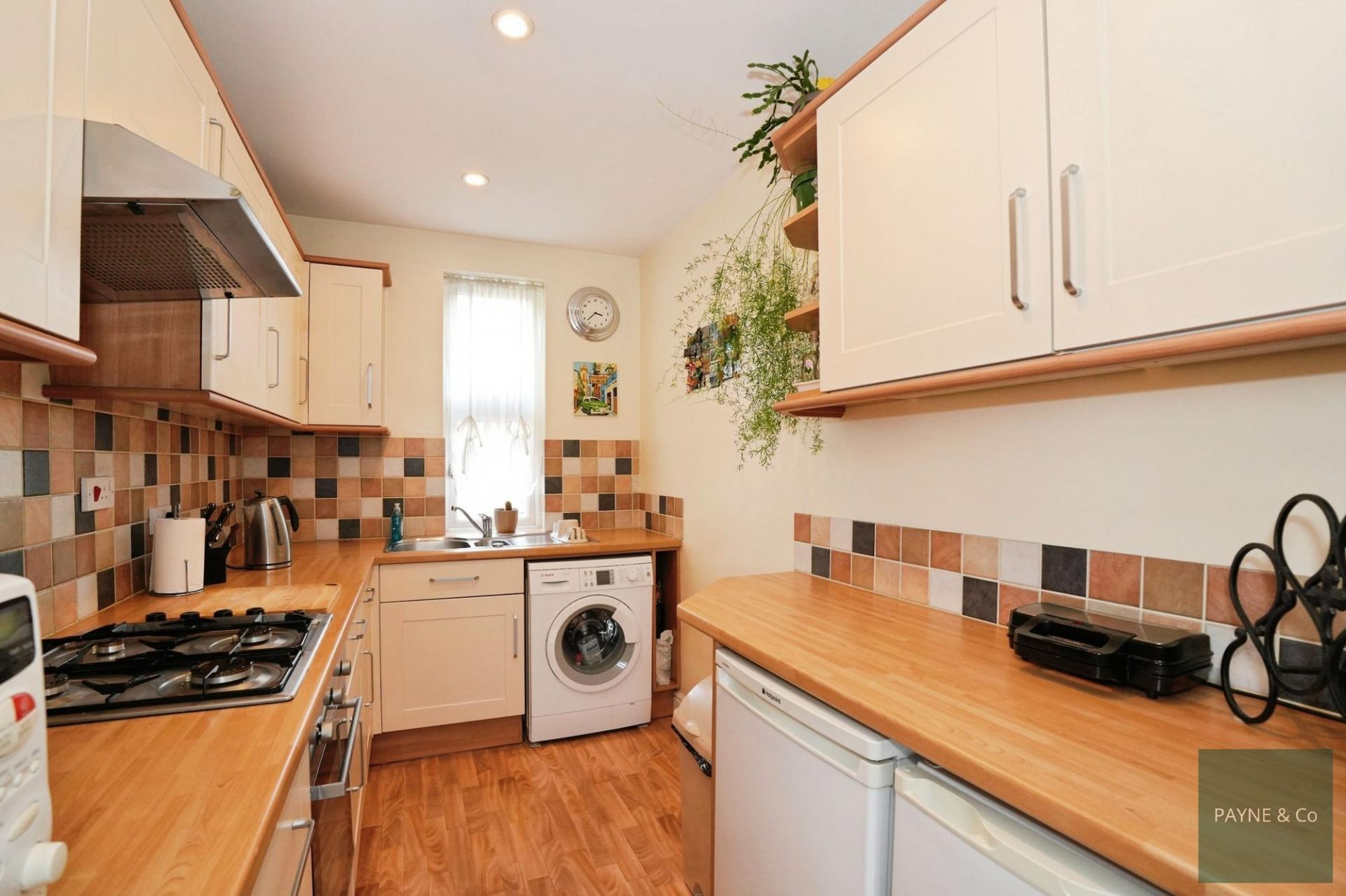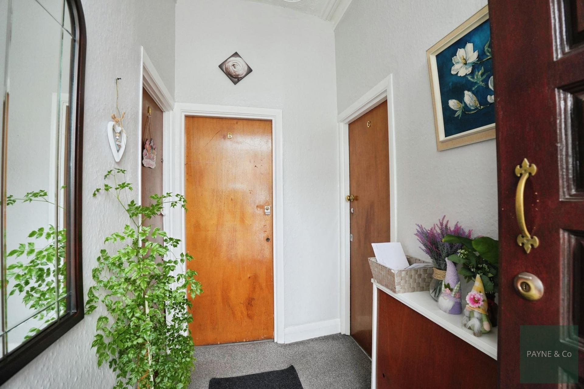 The flat includes a modern three-piece bathroom suite with a bath and shower over, catering to daily needs with convenience. The entrance hallway provides direct access to the private, south-easterly facing rear garden – a desirable space for outdoor relaxation or entertaining. Allocated parking space is available to the front, offering convenience for residents and visitors alike. The property also has access to a cellar and loft, useful for additional storage.