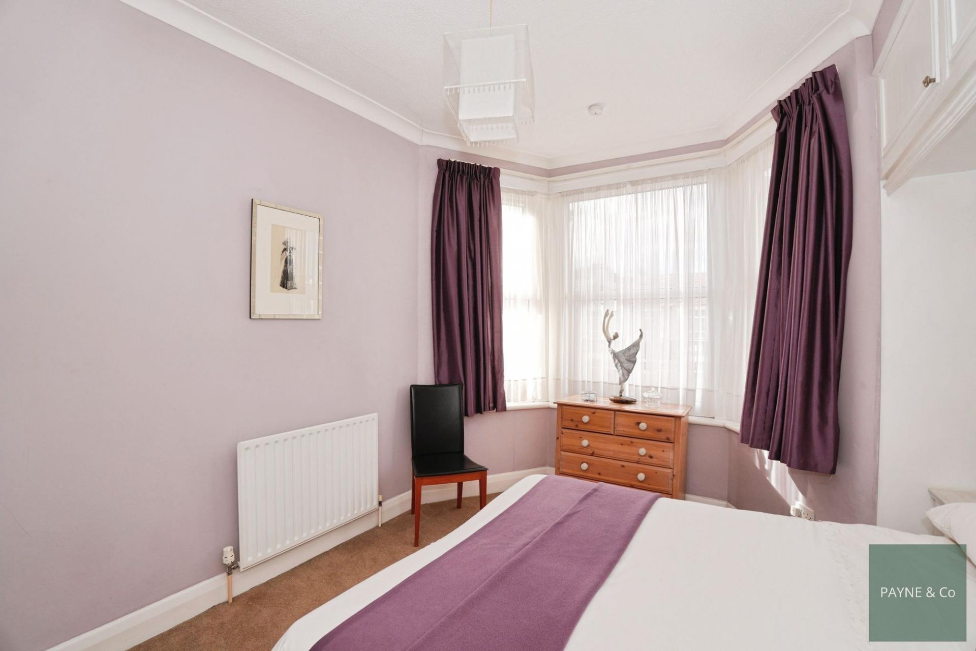 Located in the sought-after area of North Ilford, this first-floor converted flat offers a well-presented living space ideal for first-time buyers or investors. The property features two generously sized double bedrooms, with the main bedroom benefiting from built-in wardrobes for additional storage. The spacious reception room enjoys an abundance of natural light through large windows and boasts a faux chimney breast, providing a distinct focal point for the living area. There is ample space for both dining and relaxing, making it a versatile environment for a range of lifestyles.