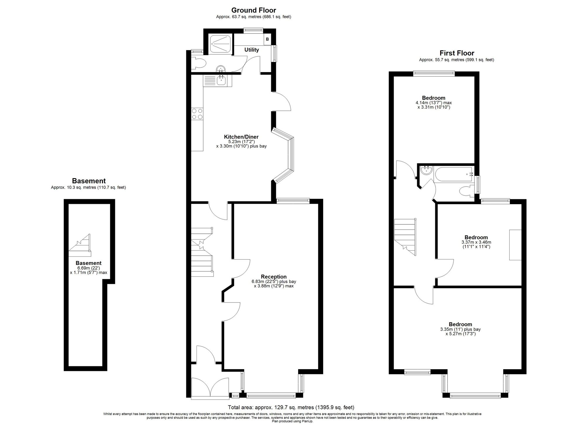All three bedrooms are doubles, with bedrooms one and three benefitting from built-in wardrobes, ensuring ample storage. Additional useful spaces include a basement and a boarded loft with a pull-down ladder, ideal for further storage requirements.