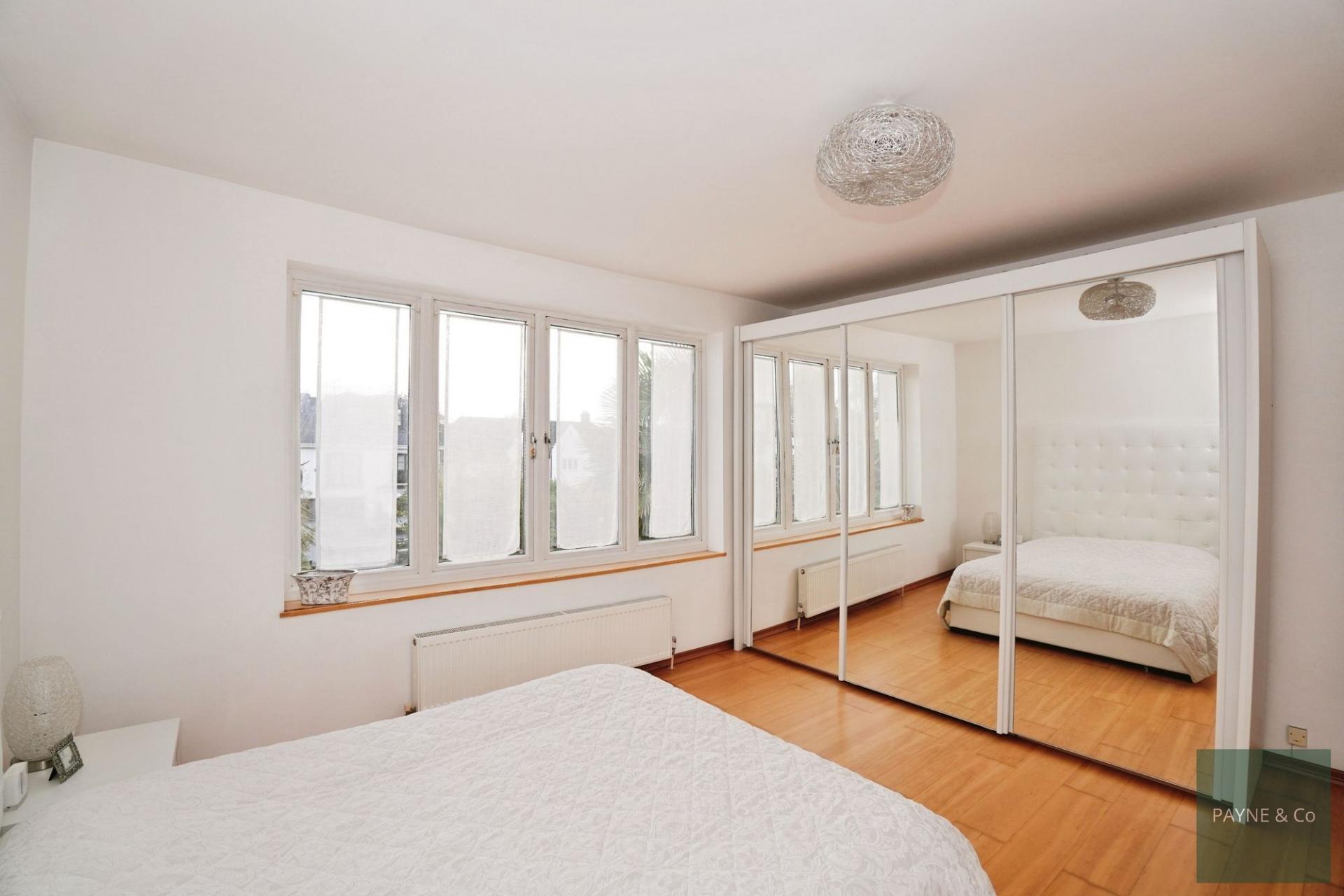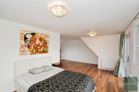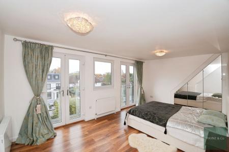 - Primary bedroom suite with built-in wardrobes, two Juliet balconies, and en-suite shower room