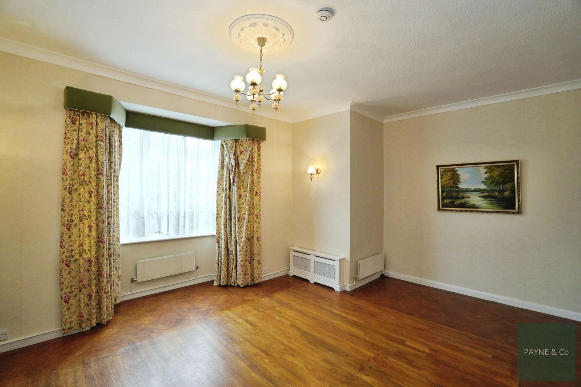 - Two reception rooms, including bay-fronted living room with fireplace and wood flooring