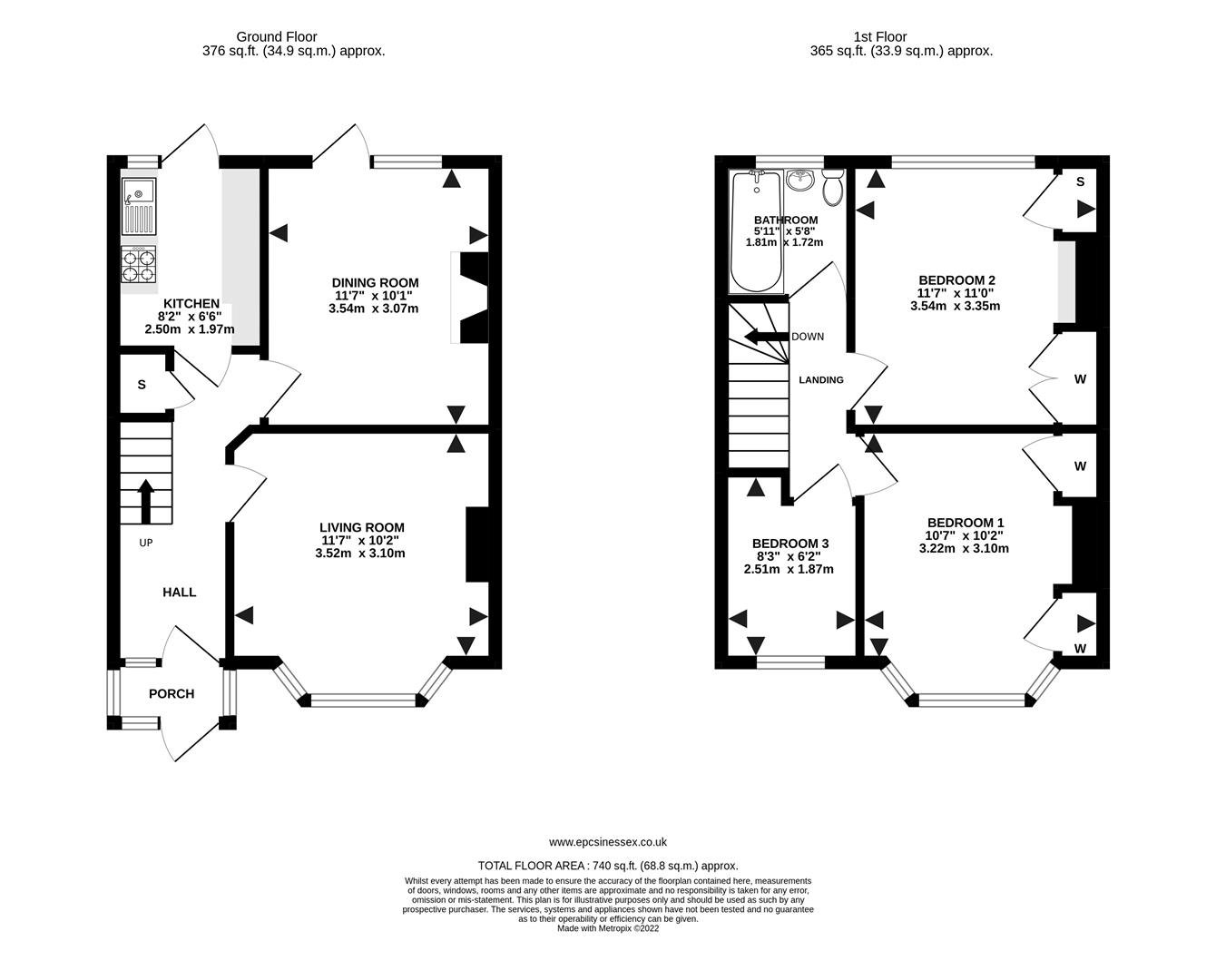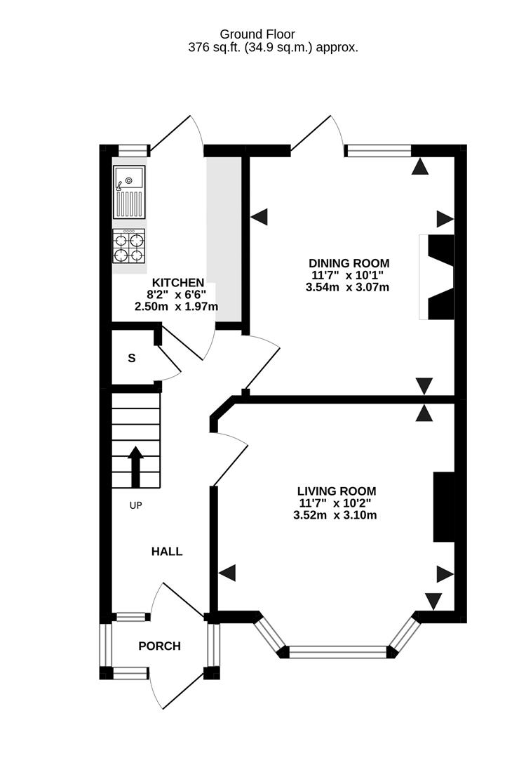 To the front of the property there is an enclosed porch which leads into the hallway. In the hallway there are stairs which rise to the first floor and give access into the kitchen, living room and dining room. A large bay window in this rooms provides lots of natural lighting. There is a further reception/dining room which sits at the rear of the property and has a double-glazed door which offers access onto a patio area in the rear garden. A well fitted galley kitchen, has a range of wall and base units with serving hatch through to the dining room. There is ample space in the kitchen for freestanding appliances and there is a further door into the rear garden.