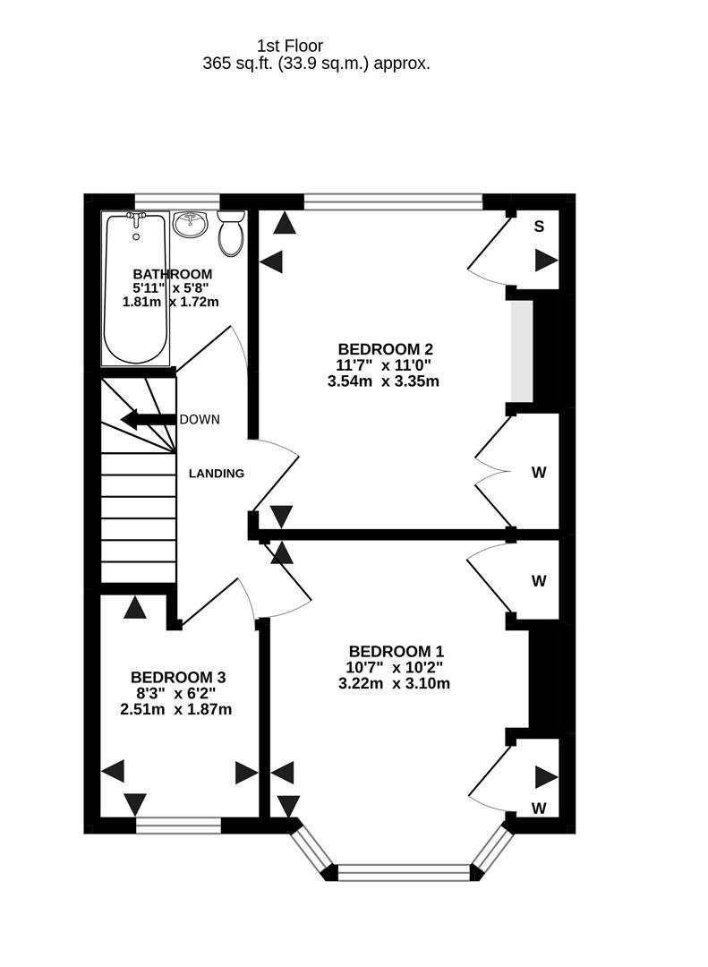 Bedroom Two - 3.53m x 3.35m 0.00m (11'7 x 11' 0) - Window to rear aspect. Built-in wardrobes.