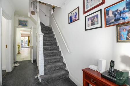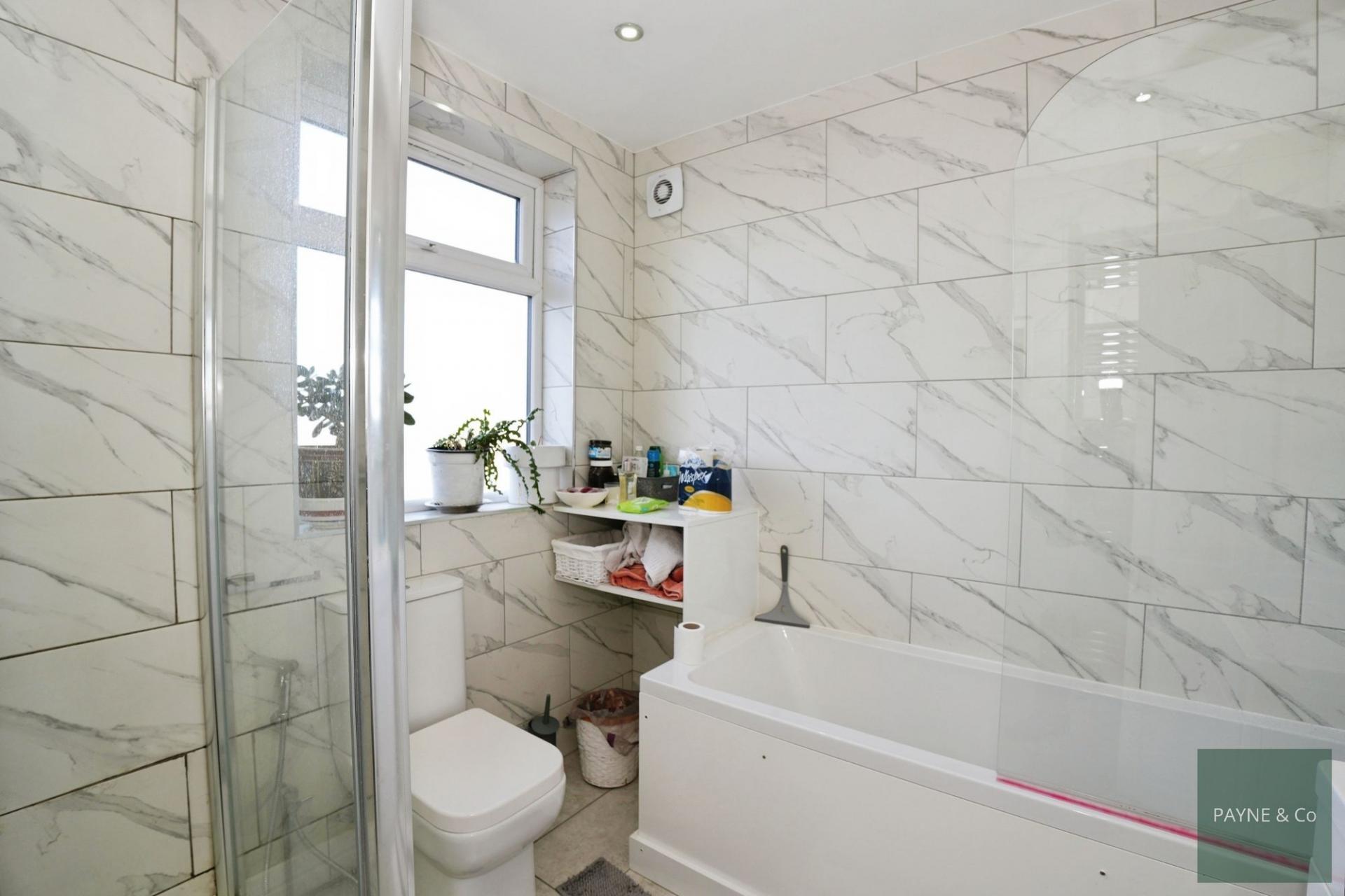 The ground floor includes two reception rooms: a separate front reception with bay window, and an open-plan living area leading into the kitchen/diner. The kitchen enjoys excellent natural light, space for dining and a lounge area, and direct access to the rear garden. A ground floor shower room adds everyday convenience.