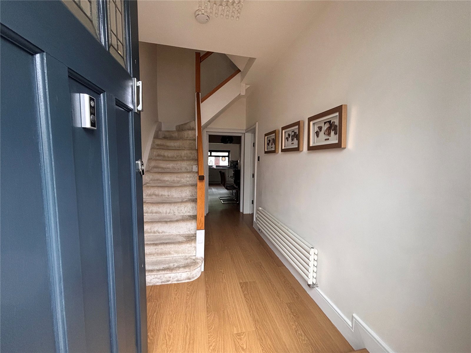 The ground floor boasts a grand entrance hall leading to generously proportioned reception room and separate dining area, ideal for entertaining or relaxing with family. A bright and expansive kitchen/diner at the rear offers ample workspace and storage, doors opening onto a private low maintenance garden—perfect for al fresco dining and summer gatherings. The ground floor also benefits from a conveniently located shower room, ideal for guests or multi-generational living.