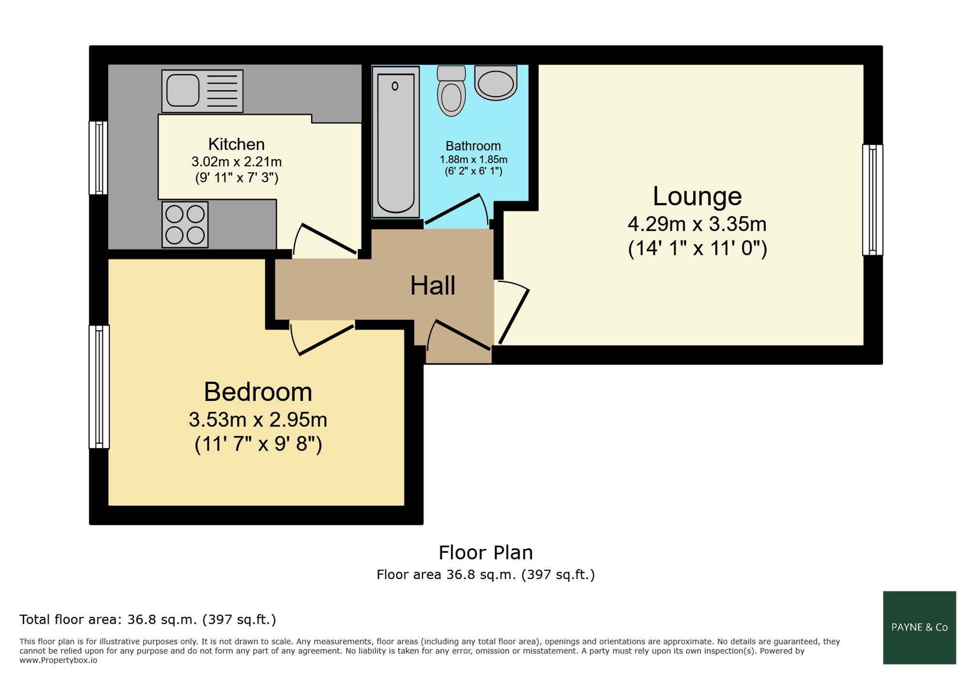 The accommodation includes a spacious double bedroom, a bathroom, a functional kitchen, and a generous reception room, offering a well-balanced and versatile layout.