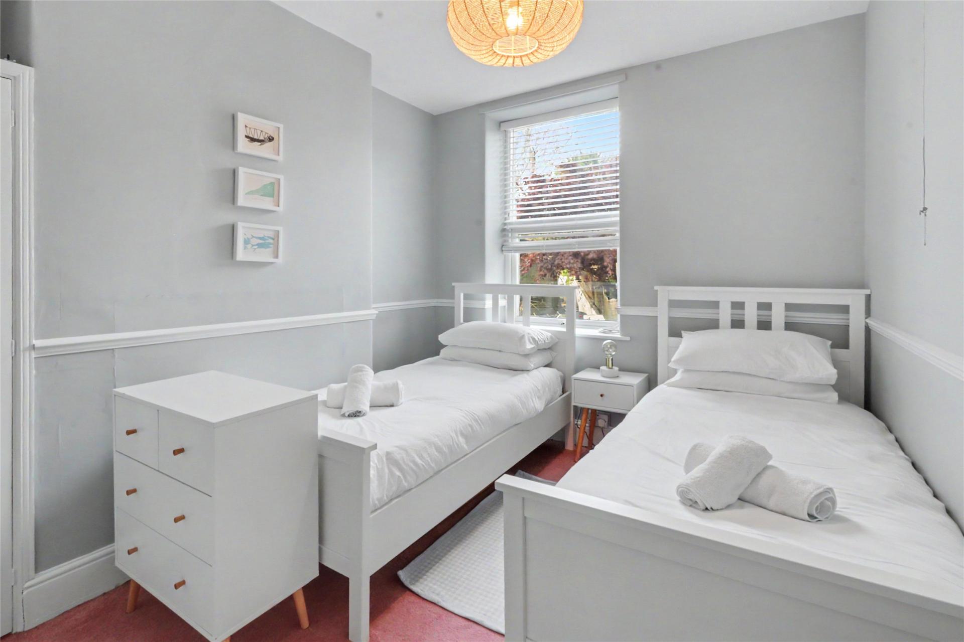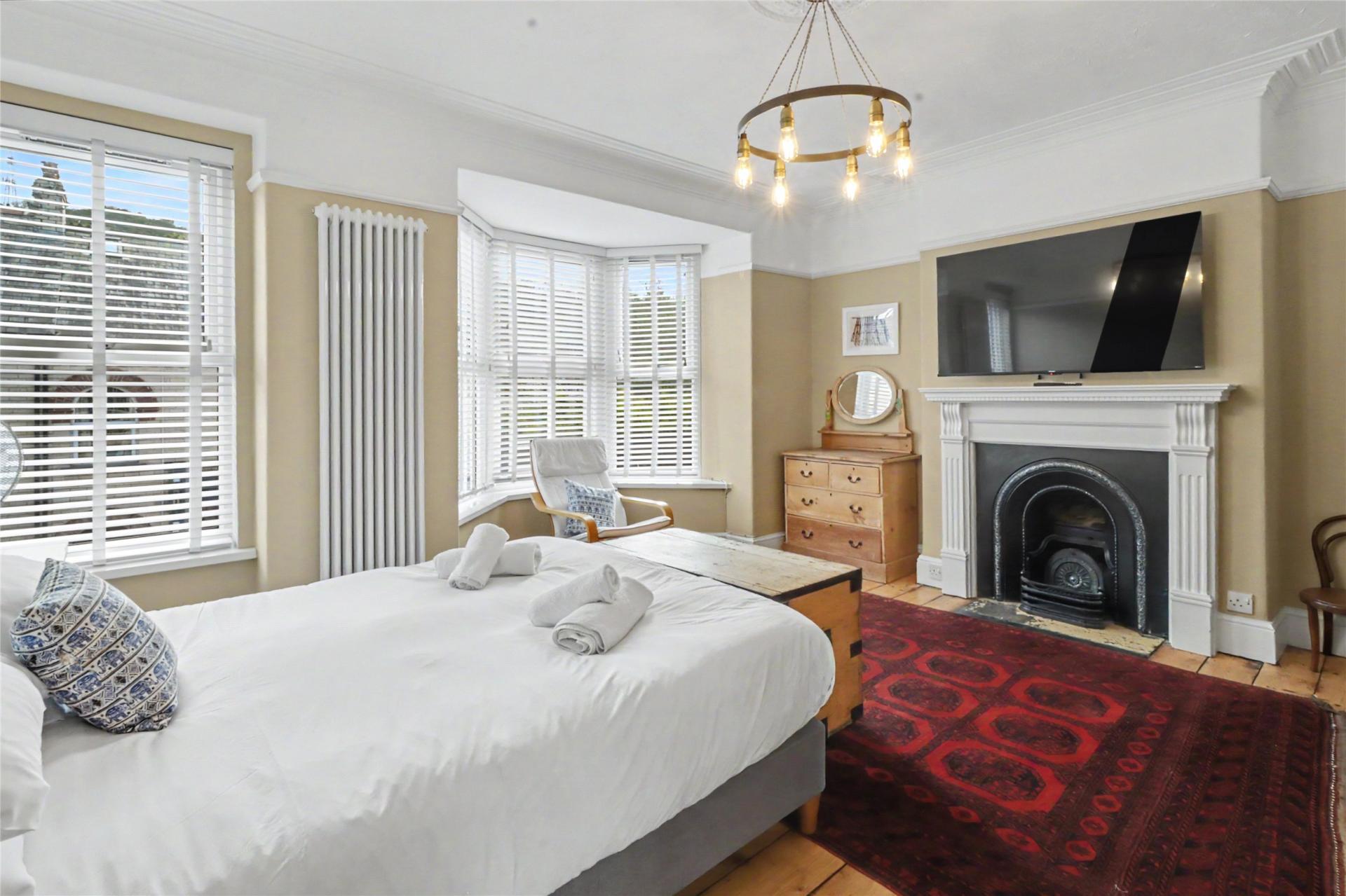 A half-landing leads to a large and well-appointed and recently replaced family bathroom with roll topped bath, shower cubicle and ornate pedestal wash handbasin. The combination boiler can also be found here also. A separate shower room/WC can also be found on this level. Continuing to the first floor, there are two generous bedrooms: the principal bedroom, located at the front of the house, spans the full width of the property with a feature fireplace and stripped original floorboards, while the second bedroom overlooks the rear garden.