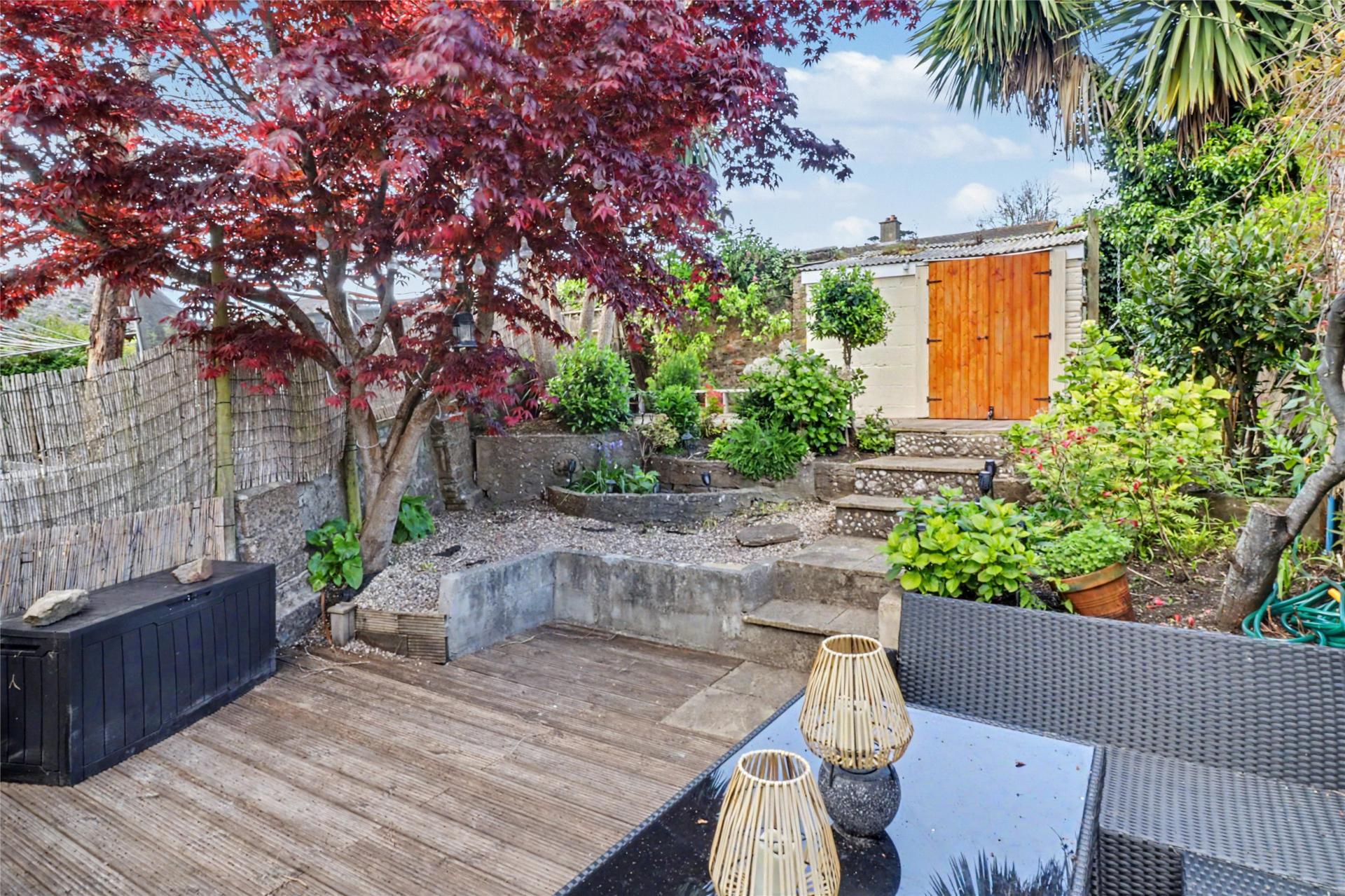 From the first floor, a further staircase rises to the second floor where two additional, well-proportioned bedrooms are located, ideal for use as guest rooms, children's bedrooms, or home offices. Externally, the property is equally appealing. To the rear, the fully enclosed garden is tiered and enjoys a sunny aspect, thoughtfully arranged with decked and gravelled areas for ease of maintenance with an outstanding mature acer tree to appreciate from a pleasant seating area. A useful outbuilding provides additional storage.