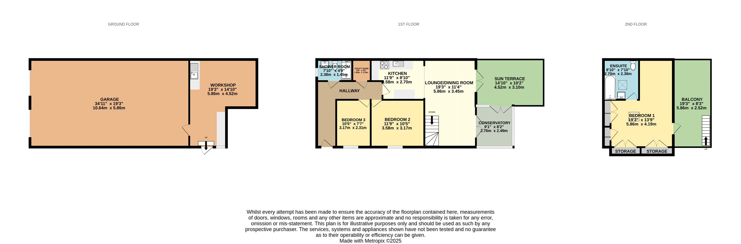 - Massive 34ft garage with double up-and-over door, car inspection pit & separate workshop 3 double bedrooms, including one with en-suite bath Unique internal balcony reception room – full of char...