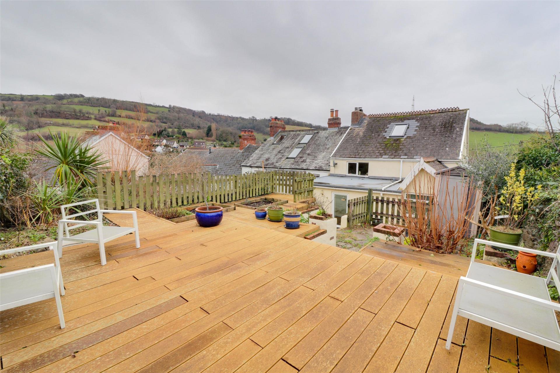 Outside to the rear of the property, there is a fully enclosed garden with an extensive composite decking which is perfect for outside dining. he rear garden is a pleasant space and enjoys views across the nearby countryside. To the front of the property there is off street parking for three cars.