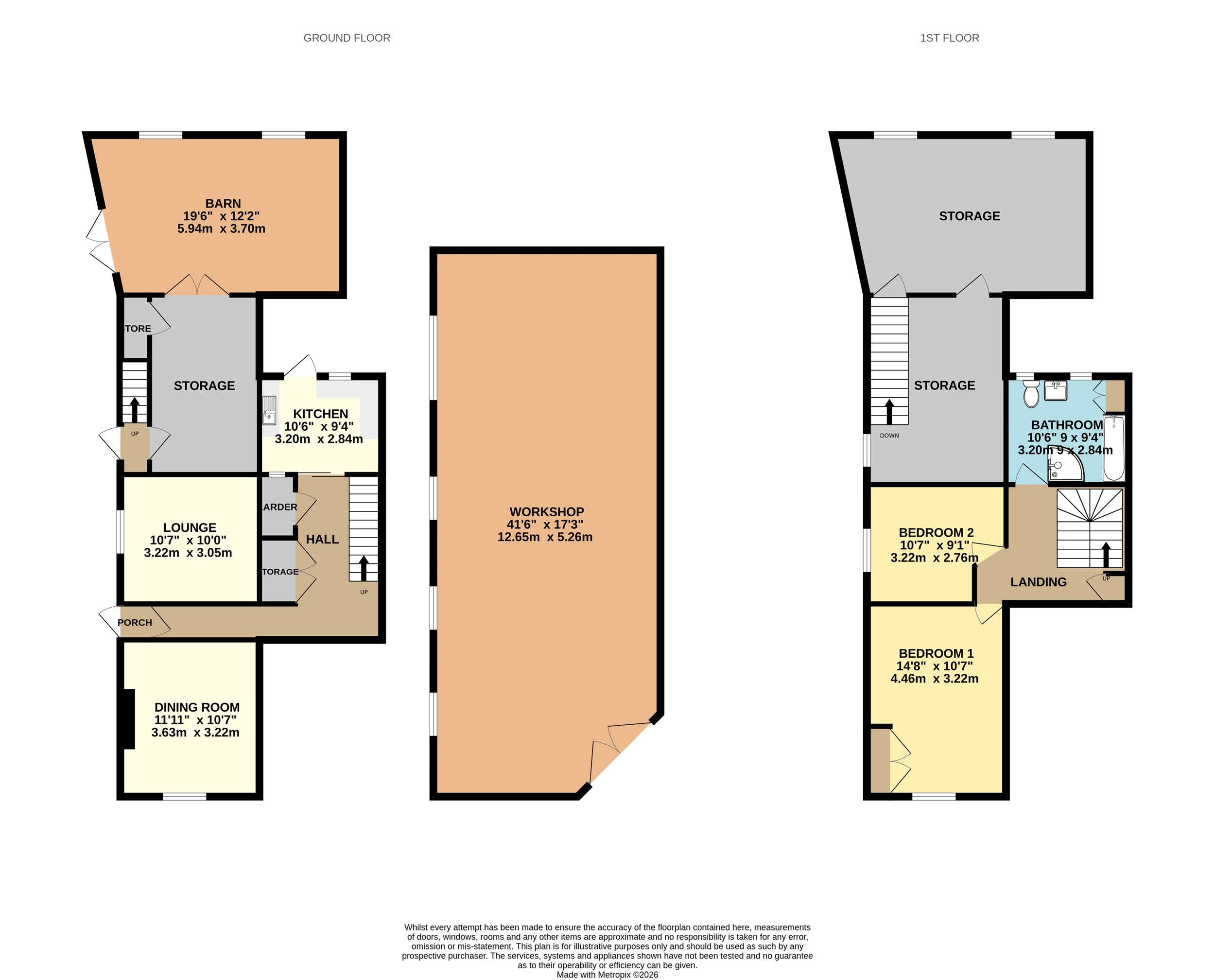 - Additional detached workshop measuring approximately 40ft in length