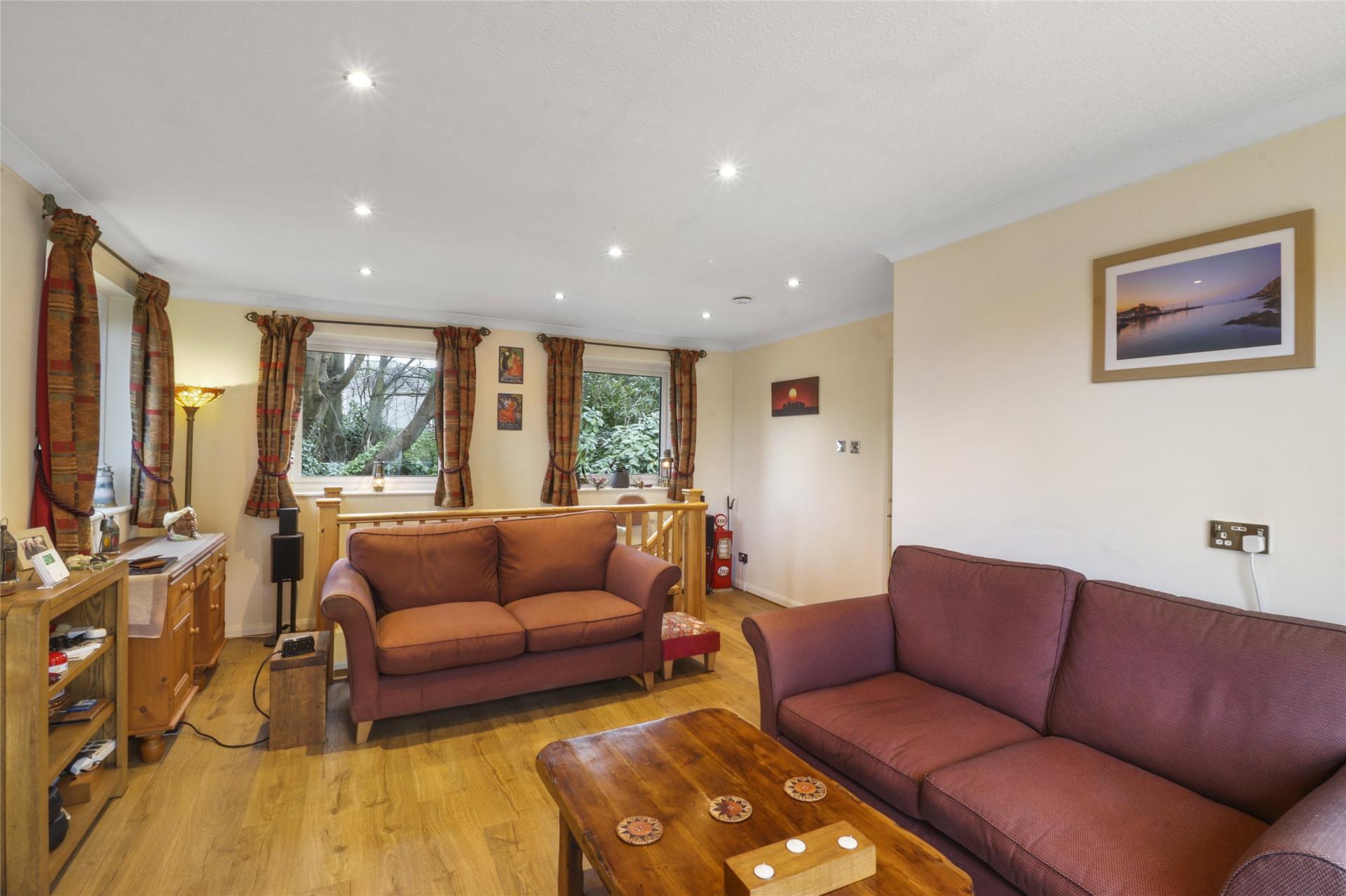 From the living room, a staircase leads to a lower ground floor where a versatile reception room is located. Formerly part of the garage, this space would make an ideal study, hobby room, or additional sitting room. The remaining section of the garage, while smaller than a standard single garage, provides valuable storage space.