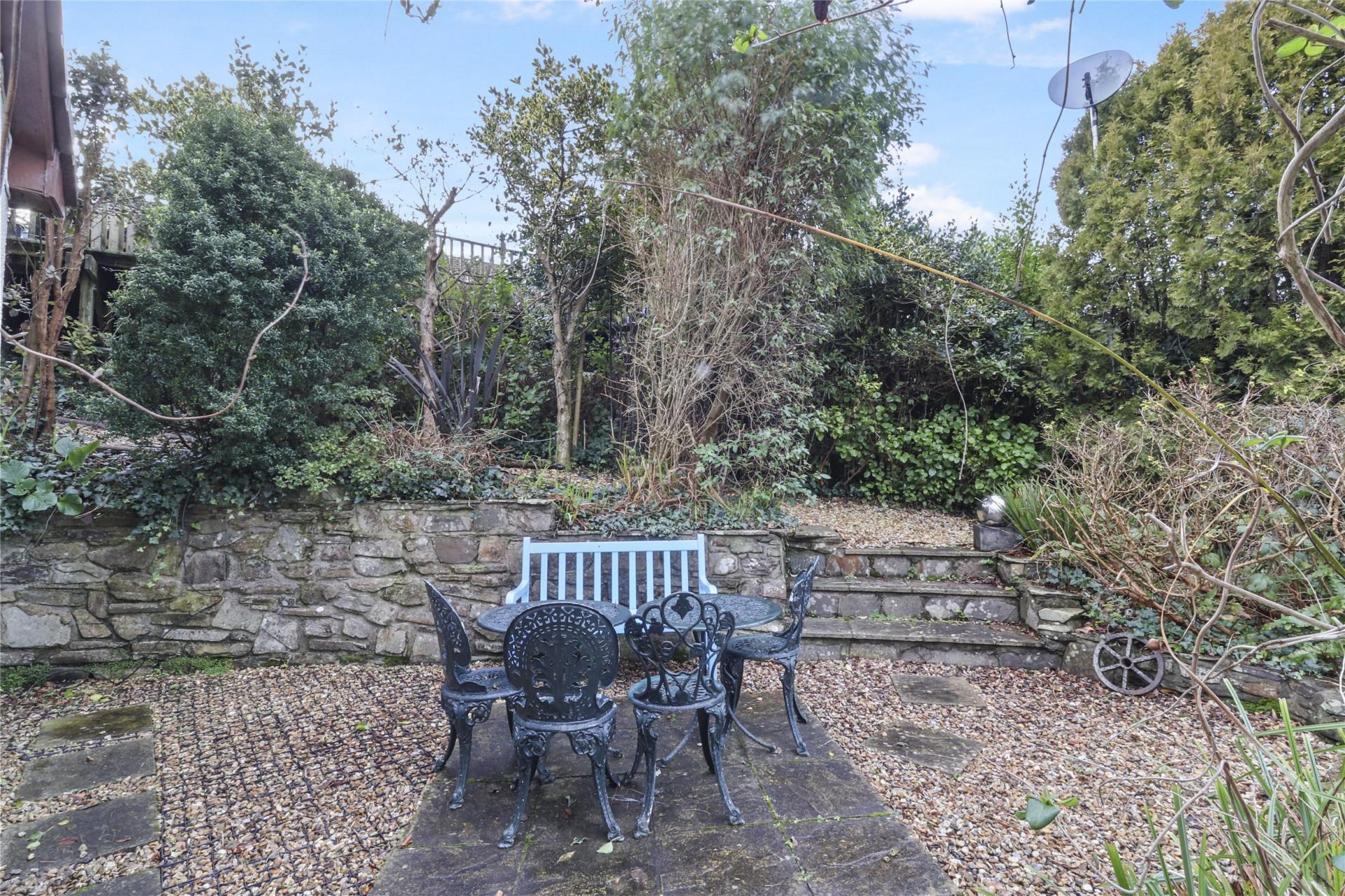 Externally, the property is complemented by wrap-around gardens to the side and rear, thoughtfully designed for low maintenance. A gently sloping gravelled area lies to the side, while the front of the property offers a generous space perfect for outdoor furniture. Steps lead up to the front door, opening onto a paved patio area complete with an outside light and tap. The gardens are well stocked with an abundance of mature shrubs and verdant vegetation, creating a pleasant and private outdoor environment.
