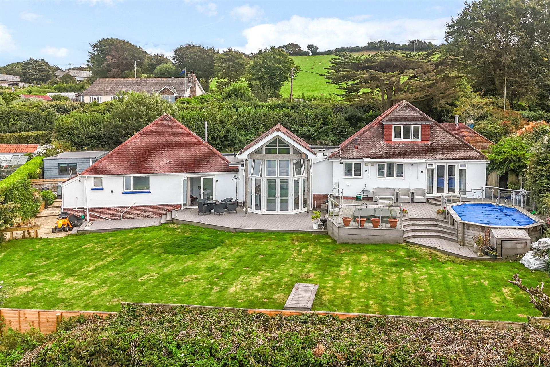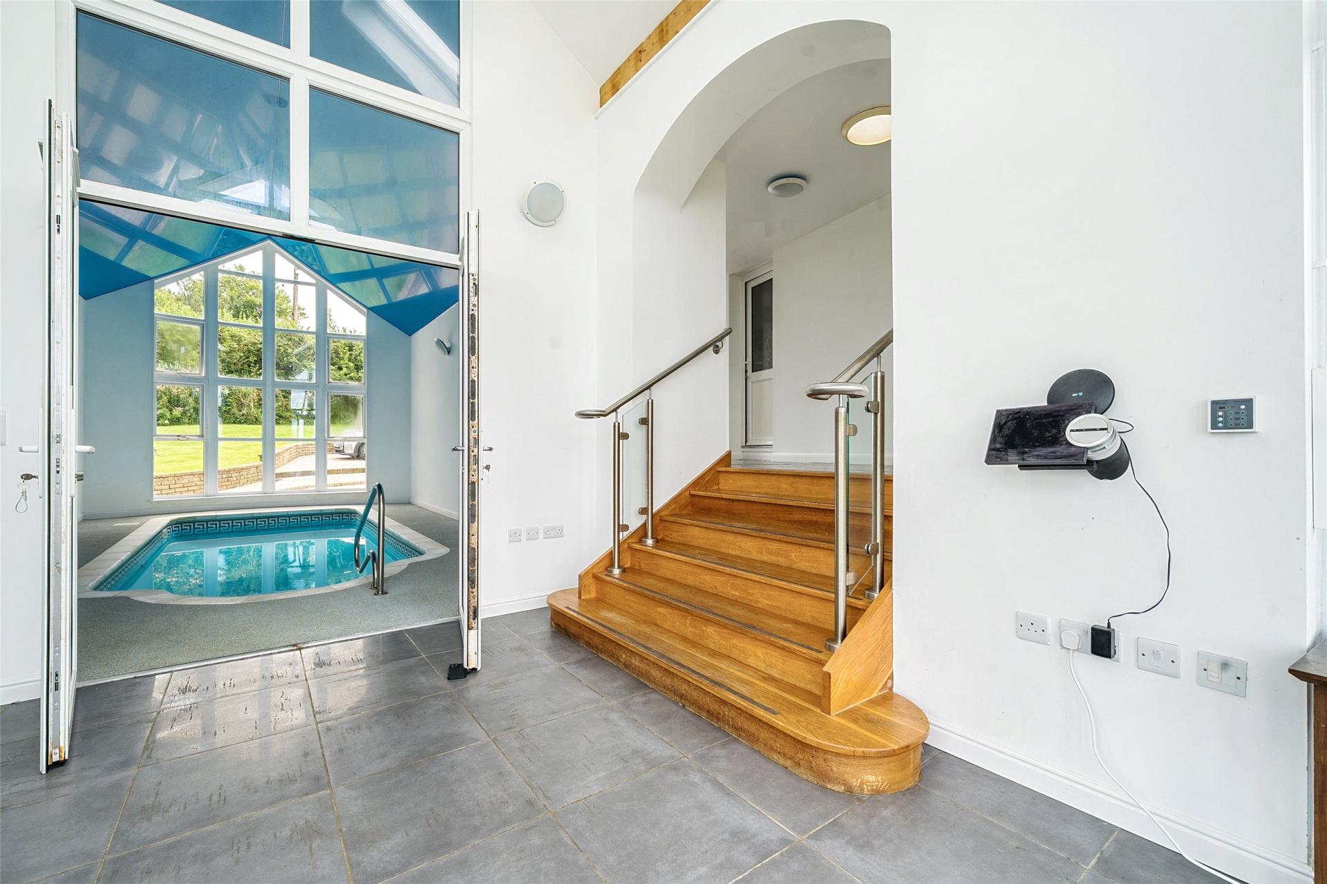 - featuring an indoor swimming pool with vaulted ceiling and panoramic floor-to-ceiling windows overlooking the Bristol Channel