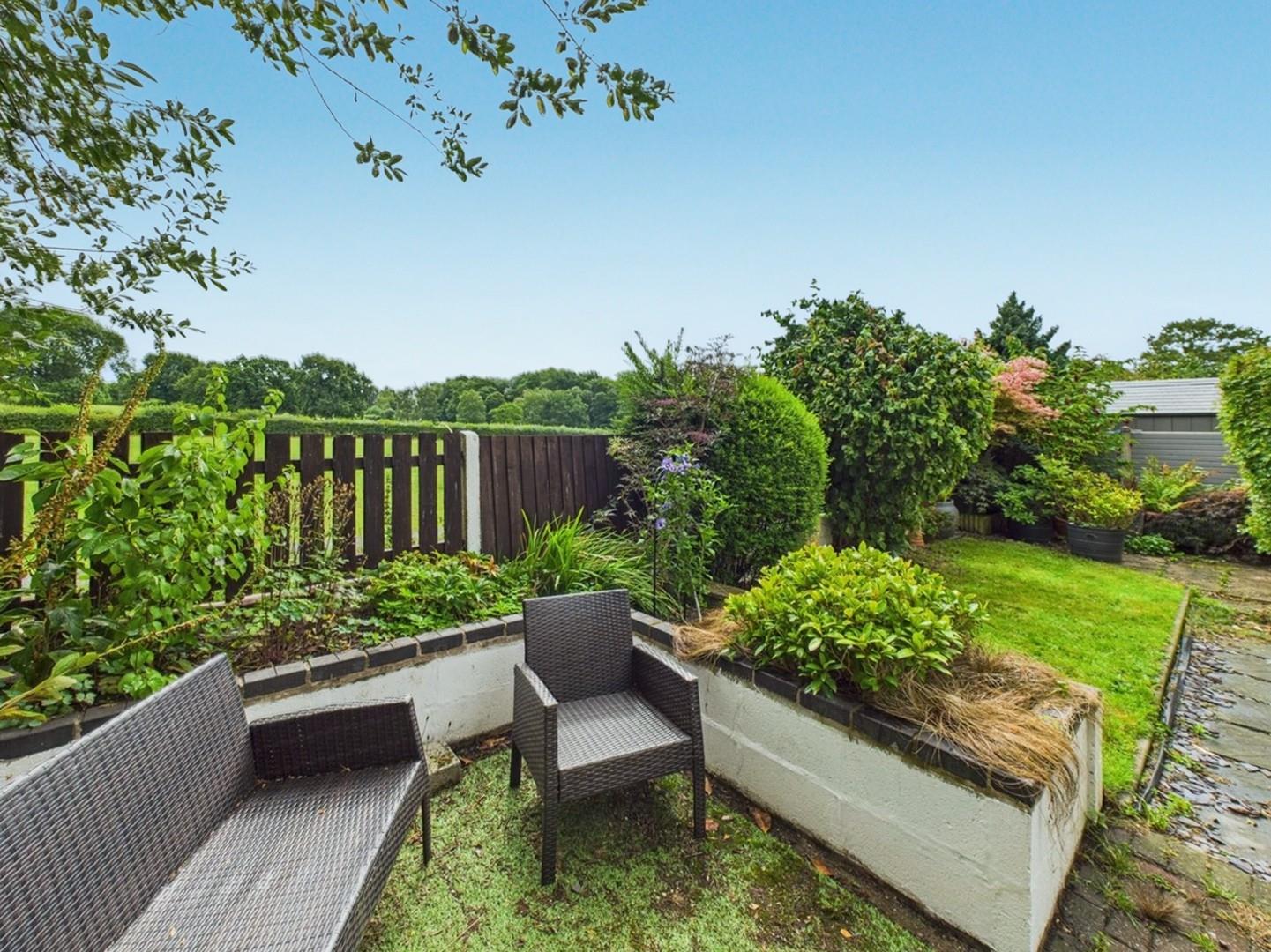 The property also benefits from a covered alleyway with access into the good sized garage. To the front of the property there is a driveway providing off road parking for two vehicles. To the rear of the property is a pleasant garden featuring lawn, raised beds containing plants and shrubs, pathway/patio and views over neighbouring open fields to rear.