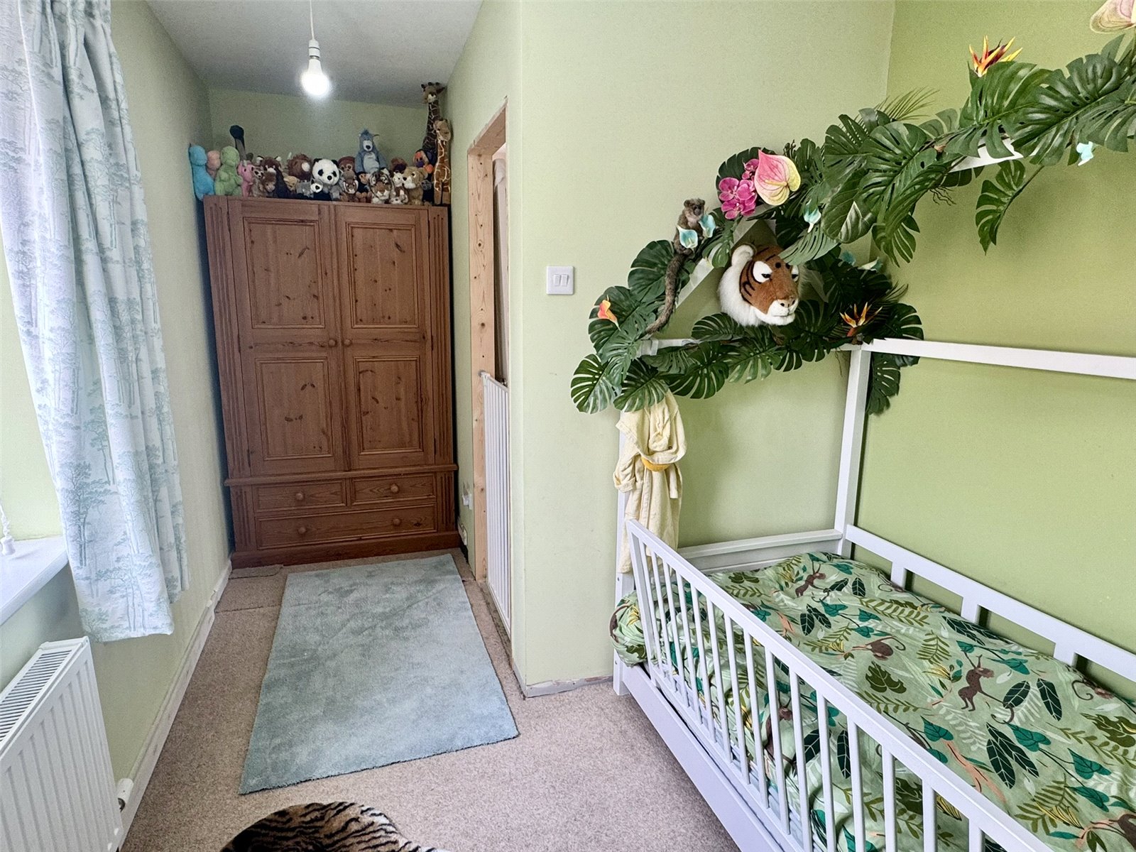 Bedroom Three 13'7" (4.14m) narrowing to 6'9" (2.07m) x 8'2" (2.50m) (L Shaped). Radiator and double glazed window to the rear aspect.