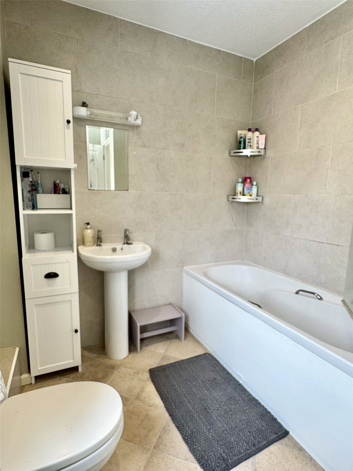 Bathroom Fitted with a three-piece suite comprising panelled bath with shower attachment and screen over, low-level W.C and pedestal wash hand basin. Tiled splashbacks, spotlights, radiator and opaque double glazed window to the rear aspect.