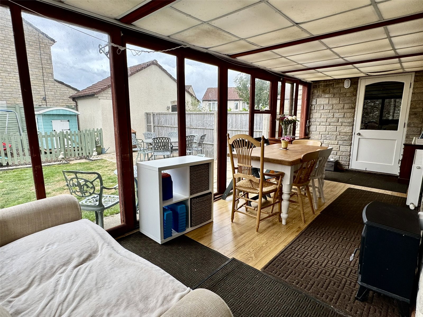 Conservatory 21'4" x 7'8" (6.5m x 2.34m). Of wooden construction with two sliding doors out to rear garden. Radiator. Sliding doors into lounge, door to kitchen and personal door into the garage.