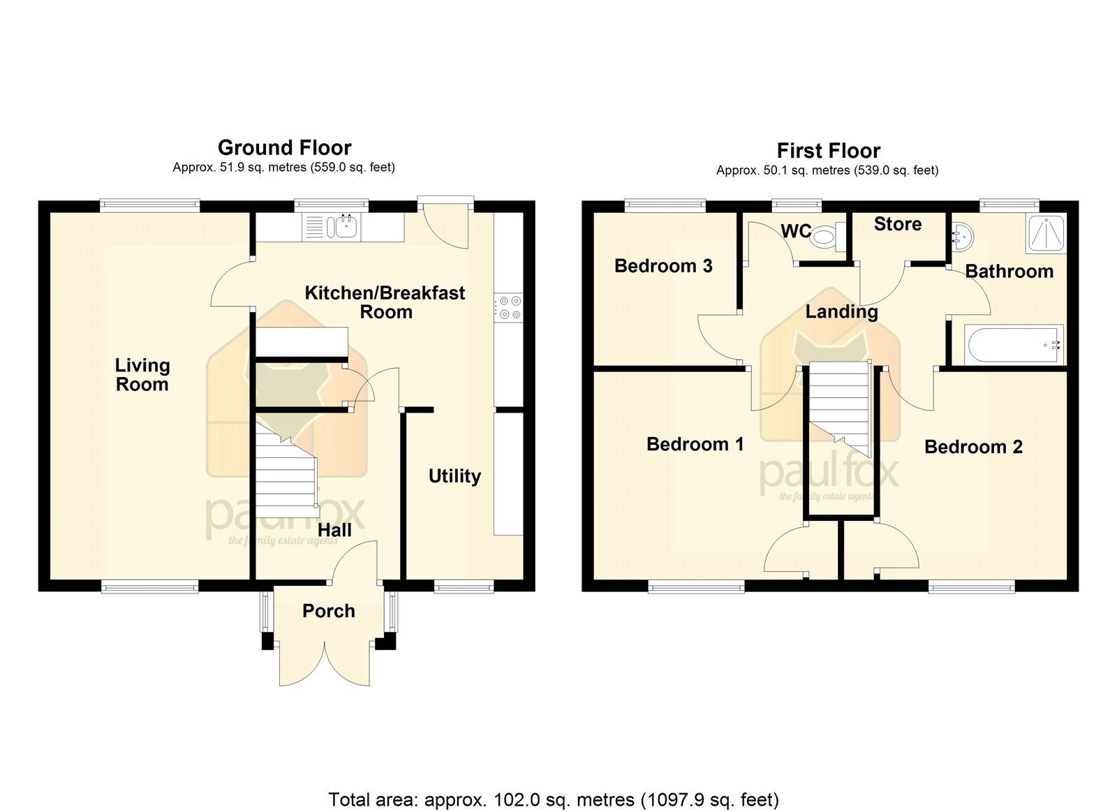 • 3 SIZEABLE BEDROOMS