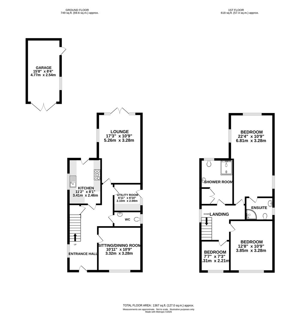 Detached Garage - 4.78m x 2.54m (15'8 x 8'4) - Access via double gates at the side of the property, there is parking space to the front of the garage also. Pedestrian door into garden.