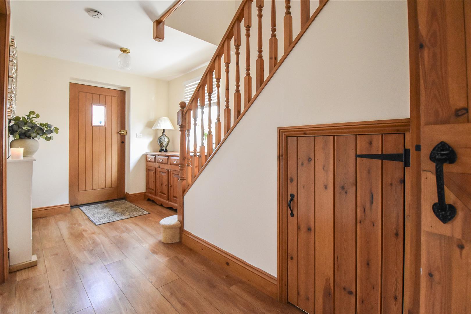 Reception Hallway - Doors to all rooms and stairs rising to the first floor. Laminate wood strip flooring. Understairs storage cupboard.